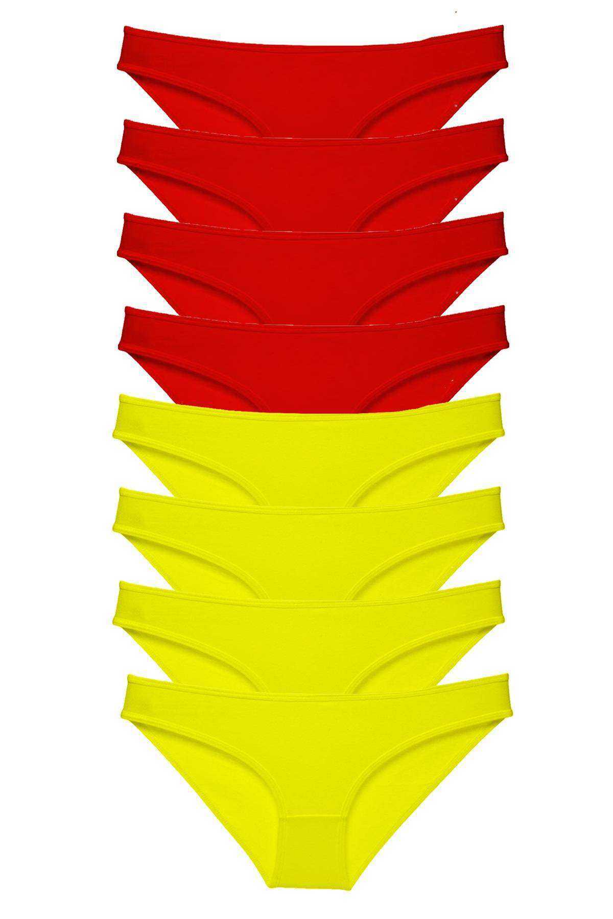 8 adet Süper Eko Set Likralı Kadın Slip Külot Sarı Kırmızı