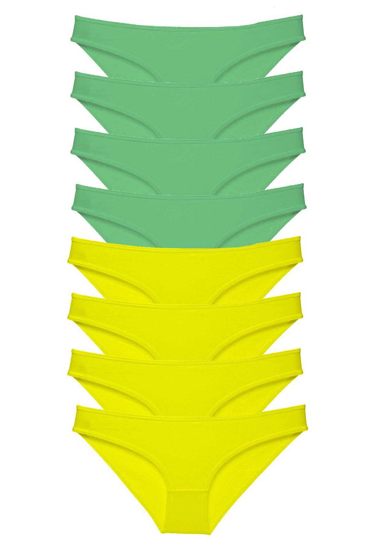 8 adet Süper Eko Set Likralı Kadın Slip Külot Sarı Yeşil