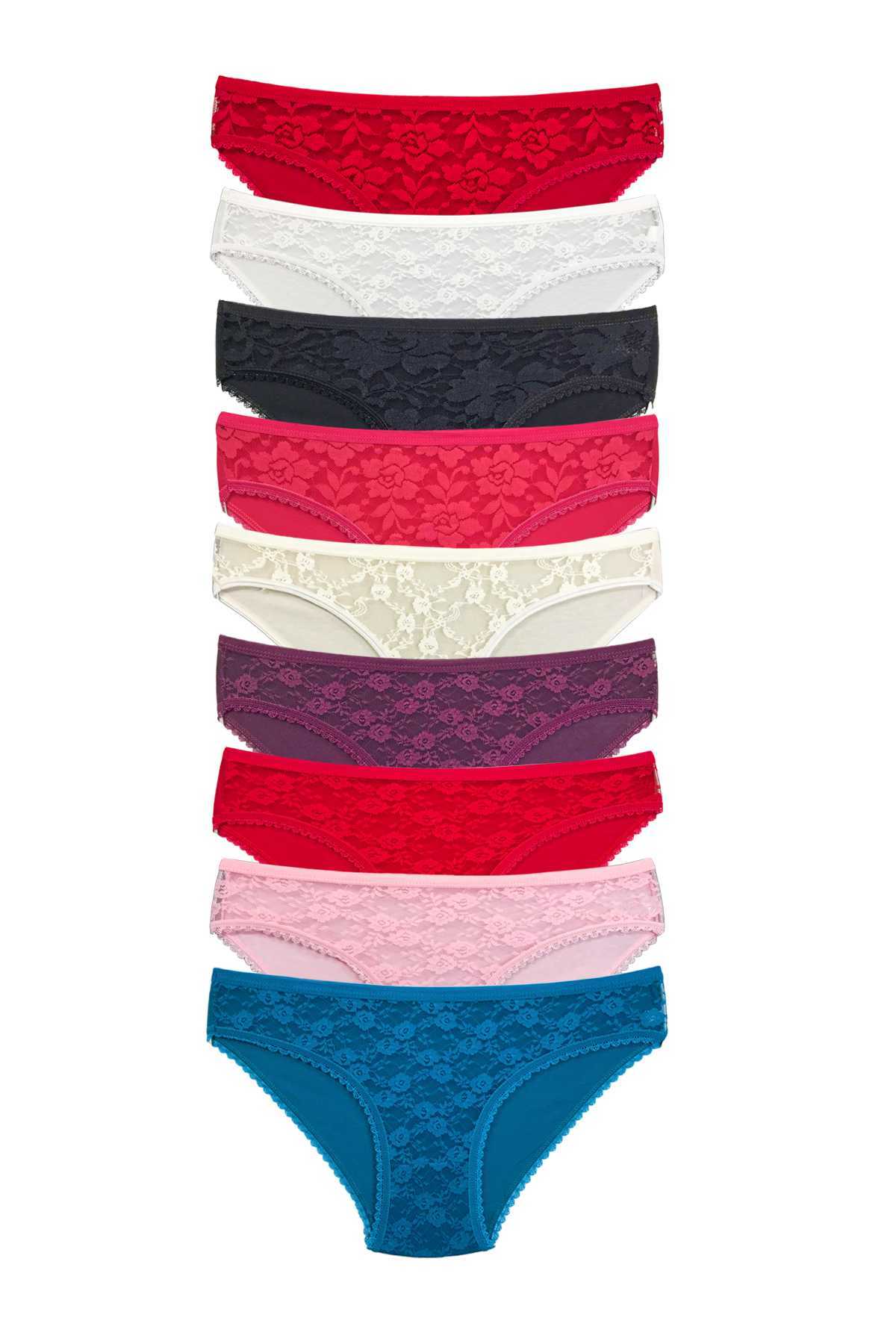 Paket içeriği: 9 Adet Önü Dantelli Transparan Kadın Slip Külot