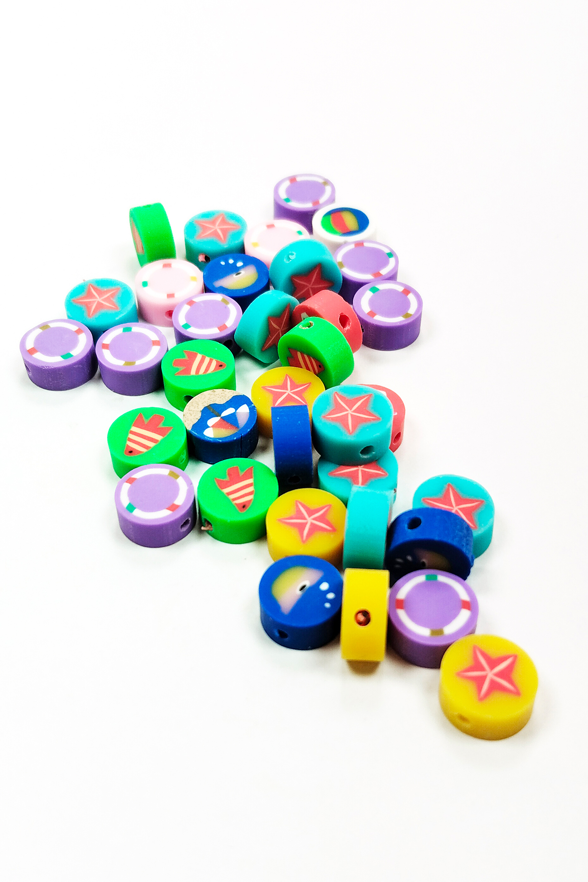 90 Adet 10 mm Polimer Kil Fimo Boncuk Takı Bileklik + 5 Metre Lastikli Misina Hediye - Deniz Temalı