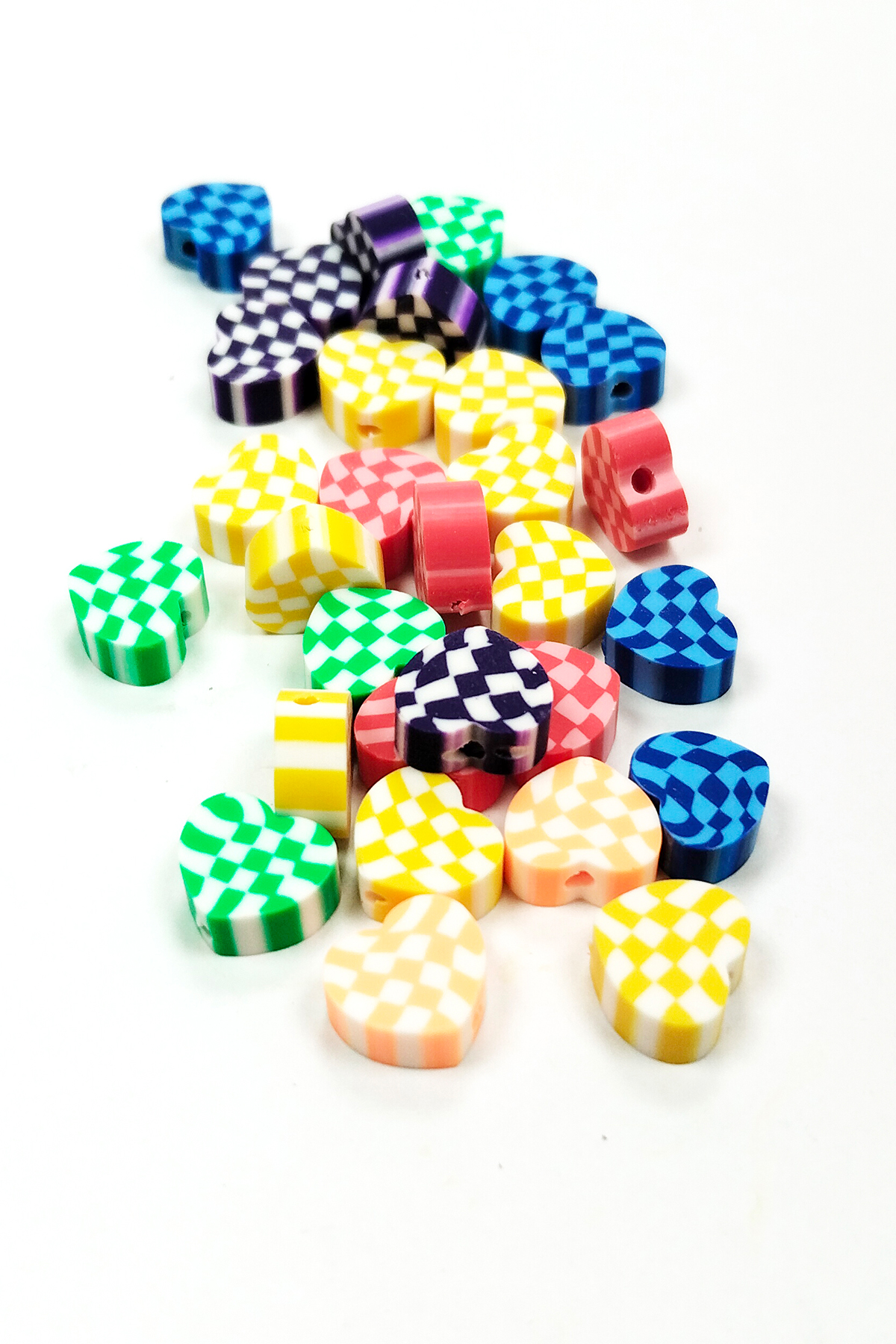 90 Adet 10 mm Polimer Kil Fimo Boncuk Takı Bileklik + 5 Metre Lastikli Misina Hediye - Desenli Kalp