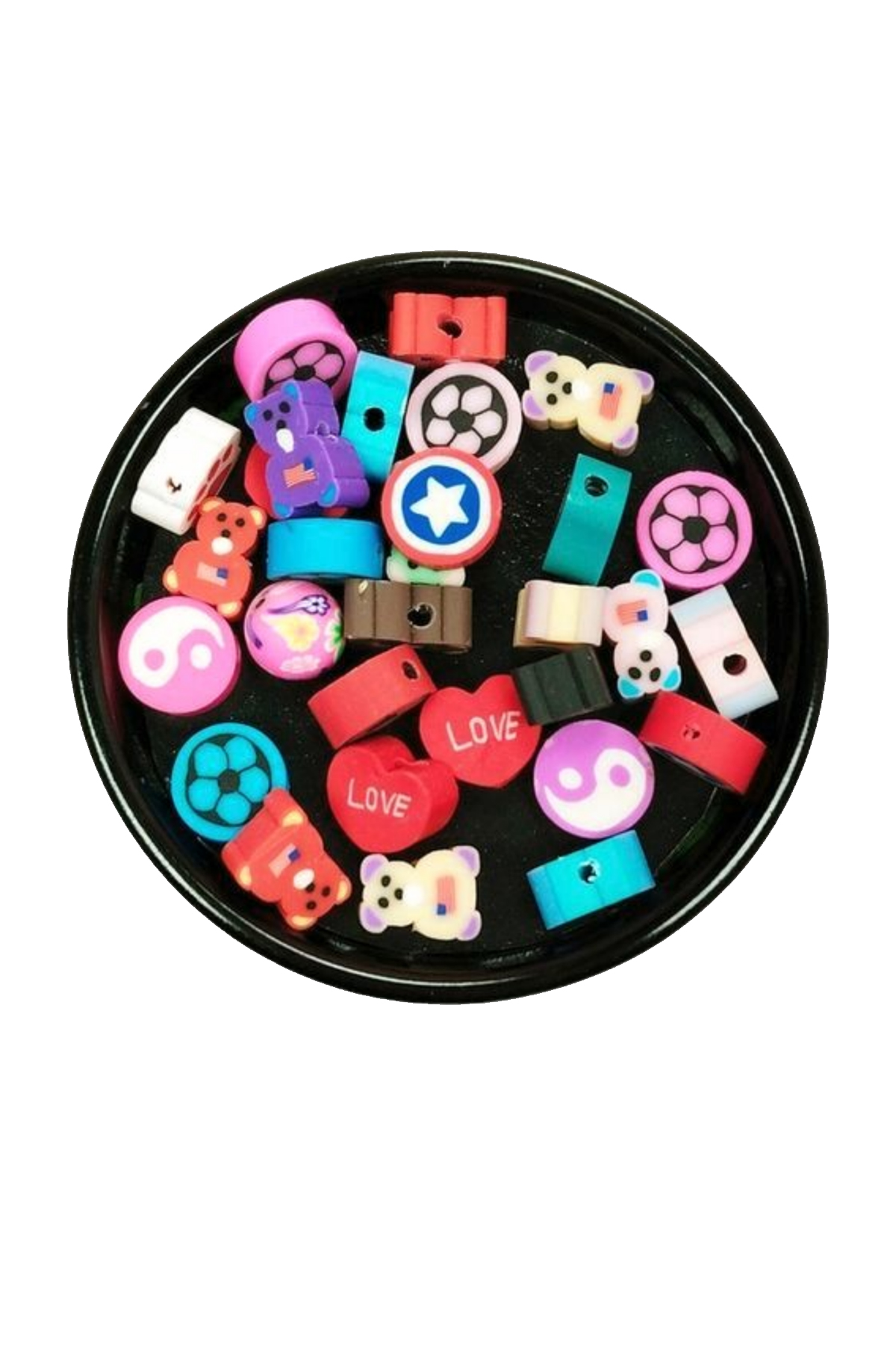 90 Adet 10 mm Polimer Kil Fimo Boncuk Takı Bileklik + 5 Metre Lastikli Misina Hediye - Karışık Renkli