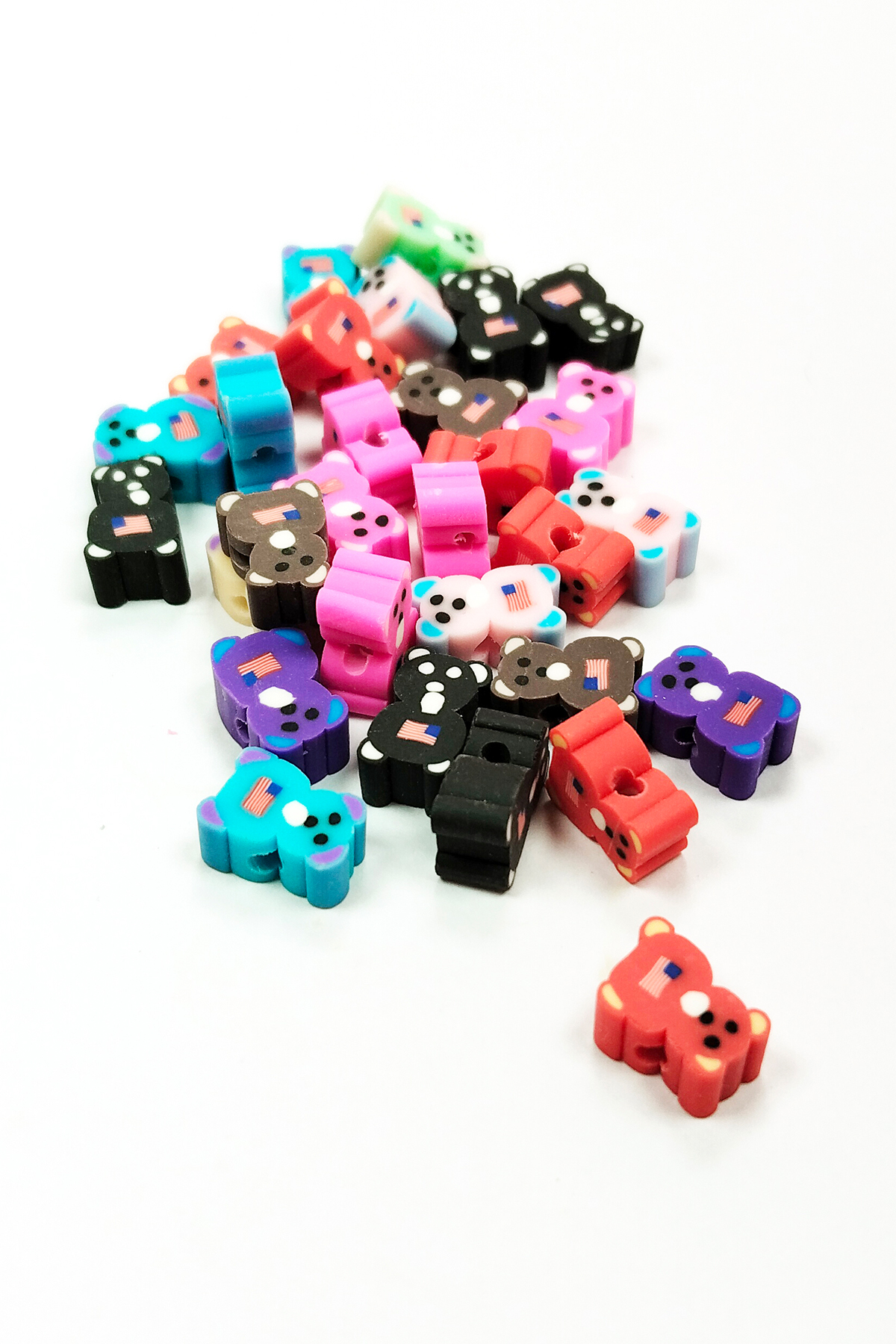 90 Adet 10 mm Polimer Kil Fimo Boncuk Takı Bileklik + 5 Metre Lastikli Misina Hediye - Renkli Ayıcık