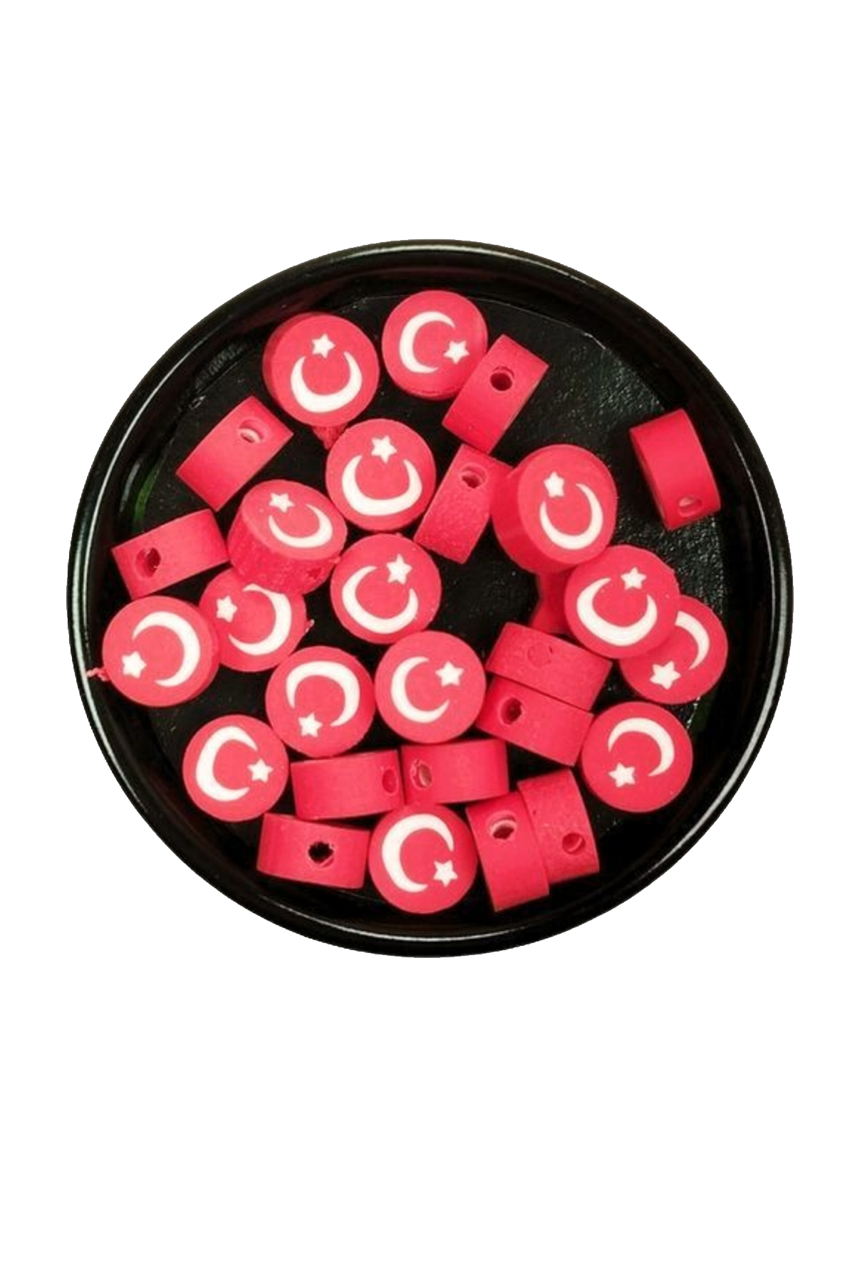 90 Adet 10 mm Polimer Kil Fimo Boncuk Takı Bileklik + 5 Metre Lastikli Misina Hediye - Türk Bayrağı