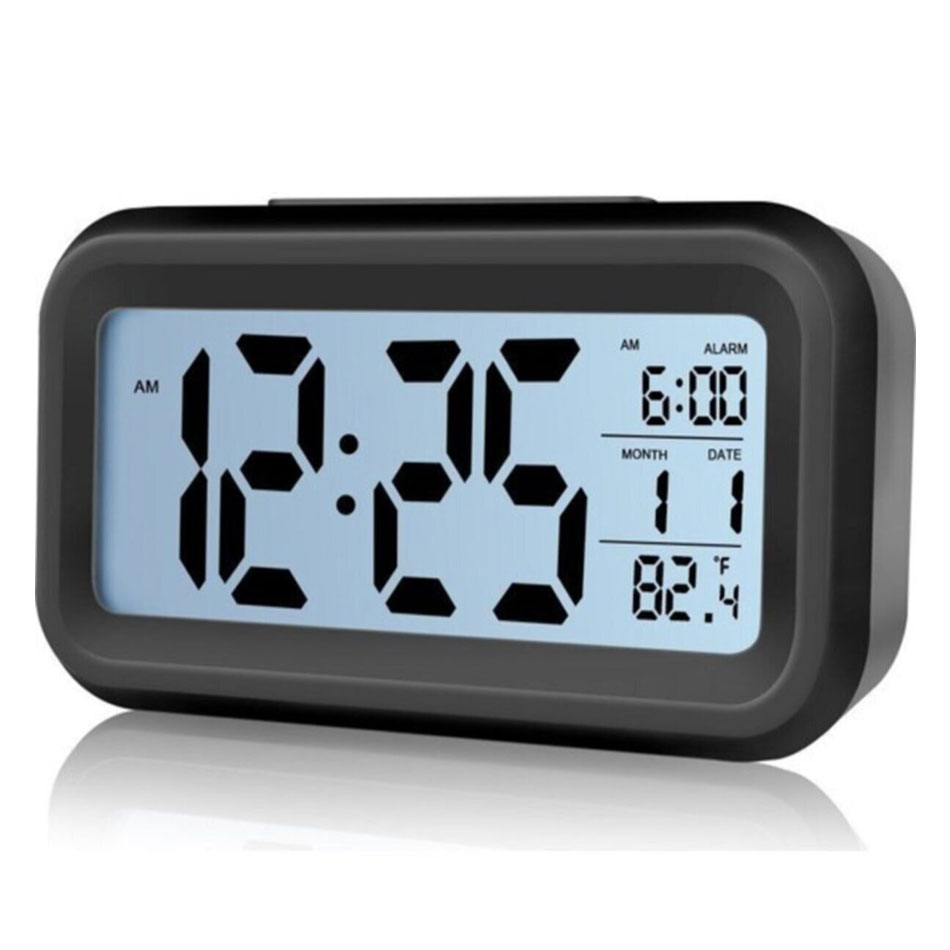 Akıllı Dijital Masa Saati Alarmlı Karanlık Sensörlü Fotoselli Siyah