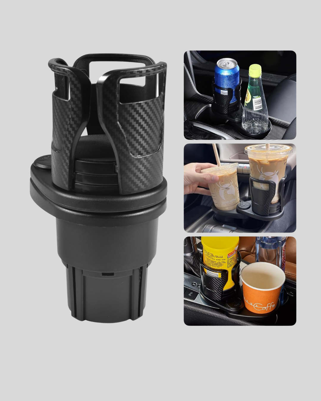 İç hacmi artıran ve araç içinde düzen sağlayan çiftli döner bardak tutucu, pratik kullanımıyla öne çıkar. 360° dönebilen özel sistemi sayesinde içeceğinizi en uygun pozisyonda konumlandırabilirsiniz. Ürün, araç içindeki dar alanları değerlendirmek için geliştirilmiş olup tek yuvalı bardak tutucusunu iki alana dönüştürür. Karbon fiber yüzeyi hem estetik hem kaliteli bir görünüm sunar. Kalınlaştırılmış dayanıklı plastik malzemeden üretilmiş olması sayesinde uzun ömürlü kullanım imkânı sağlar. Ayarlanabilir açıklık özelliği farklı ebatlardaki şişe, kupa, termos ve kutu içeceklerle uyumludur. Su geçirmez yüzeyi kolay temizlenir ve kir tutmaz. Aracınızın iç mekânını düzenli tutarken aynı zamanda daha fazla eşya koyma imkânı sunar. Kullanıcı dostu, sağlam ve şık tasarımıyla ideal bir araç içi aksesuarıdır.