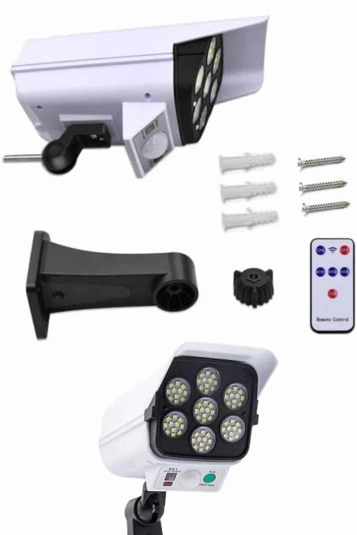 Bu güneş enerjili güvenlik ışığı, hem  kamera görüntüsü  olarak hem de bahçe aydınlatması işlevi görerek iki farklı amaca hizmet eder. Çevre dostu tasarımı sayesinde, güneş paneli aracılığıyla güneş enerjisini emerek enerji tasarrufu sağlar ve dış mekan güvenliği için mükemmel bir çözüm sunar. Pil kapasitesi sayesinde, düşük ışık modunda yaklaşık 40 saat kesintisiz çalışma süresi sunar. Dahili PIR hareket sensörü, 10 ft ile 20 ft arasındaki mesafede hareket algılayarak ışığın otomatik olarak yanmasını sağlar. Bu özellik, özellikle gece saatlerinde bahçe, veranda, garaj ve diğer dış mekan alanlarındaki güvenliği artırır. Ayrıca, ışığın açısını ve güneş panelinin yönünü 5 eksenli rotasyon ile kolayca ayarlayarak, ışığın verimli bir şekilde kullanılması sağlanır. IP66 su geçirmezlik özelliği, zorlu hava koşullarında bile dayanıklılığını sürdürmesini sağlar. Gelişmiş tasarımı sayesinde, sadece güvenlik için değil, aynı zamanda dış mekan dekorasyonu için de mükemmel bir çözüm sunar. Kurulumu oldukça kolaydır ve pratik kullanımı sayesinde bahçenizde, yol kenarlarında veya diğer dış alanlarda uzun süreli ve verimli aydınlatma sağlar.