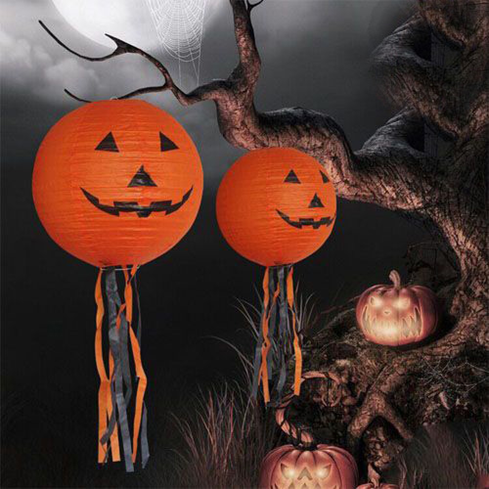 Balkabağı Kağıt Japon Led Süs - Kabak Dekor Yuvarlak Fener Süs 25 cm