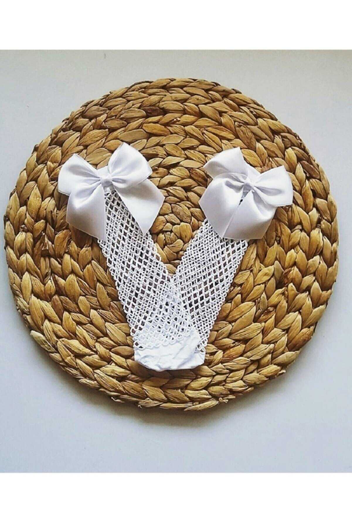 Paket içeriği 1 adet beyaz fiyonklu file kız çocuk çorabı