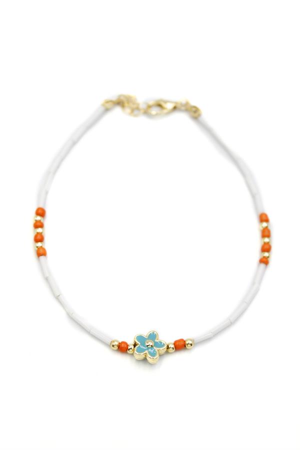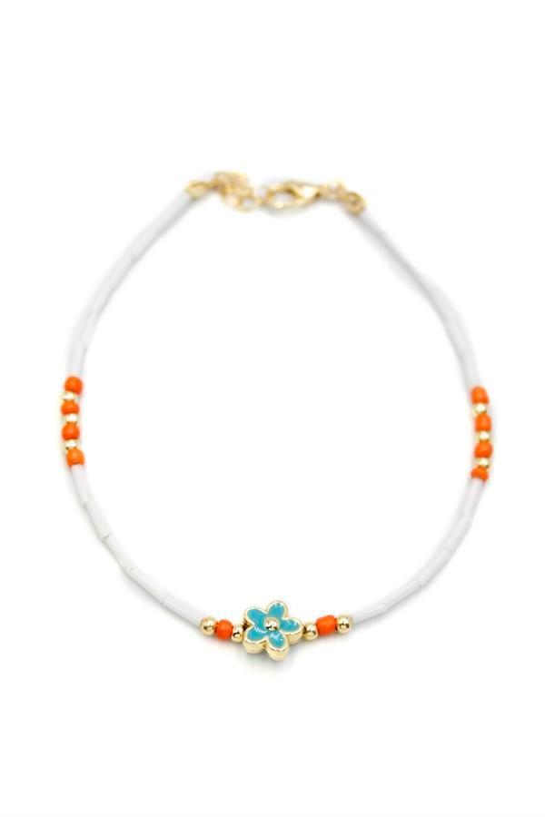 Boncuklu Çiçek Halhal - Mavi
