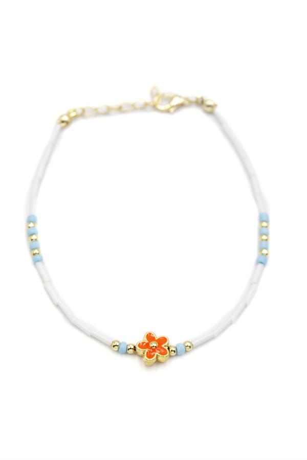 Boncuklu Çiçek Halhal - Turuncu