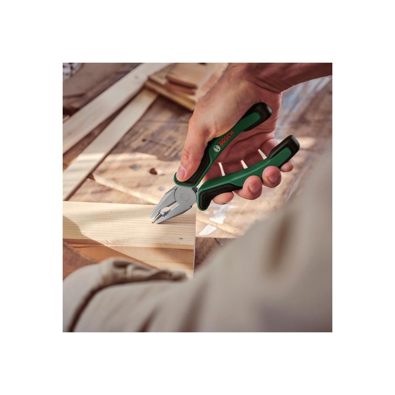 Bosch 17 parçalı üniversal el aleti seti, evde veya yolda çok sayıda DIY onarım, bakım ve dekorasyon zorlukları için doğru donanıma sahiptir. Set, 300 g'lık bir mühendis çekici, 3 m'lik bir şerit metre, kopçalı bıçak, 25 cm'lik su terazisi, kombine pense, bir bız, bir üniversal tornavida, 10 uç ve bir saklama kutusundan oluşur. Bu aletler, yüksek kaliteli malzemeler kullanılarak sağlam ve uzun ömürlü olacak şekilde üretilmiştir. Optimum konfor için yumuşak kavrama alanları veya kavisli formlar gibi ergonomik özelliklere sahiptirler.