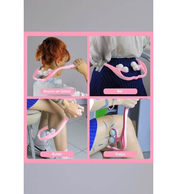 Boyun Bacak Ayak Bel Masaj Aleti Çok Fonksiyonlu Manuel 4 Tekerlekli - Pembe