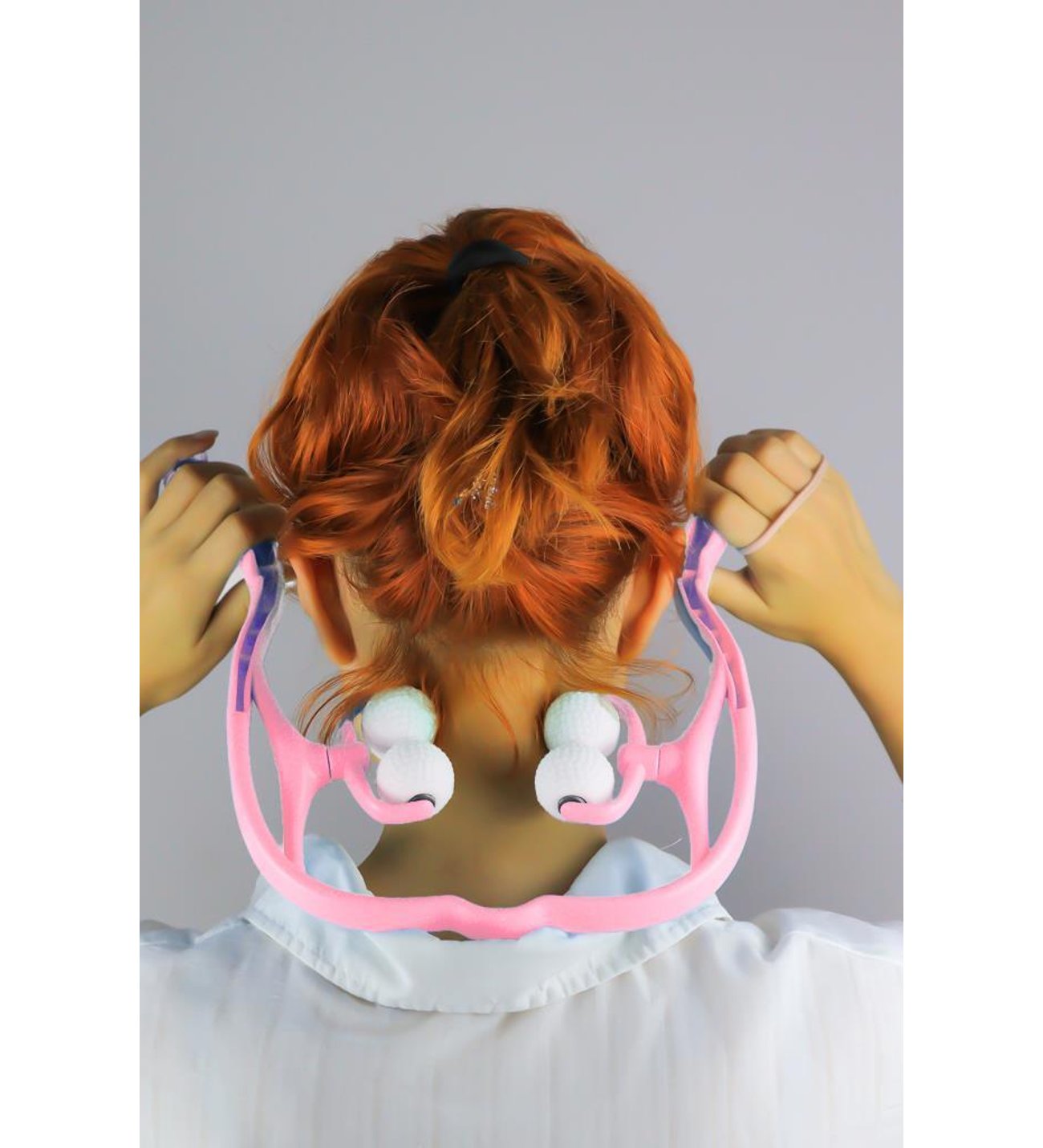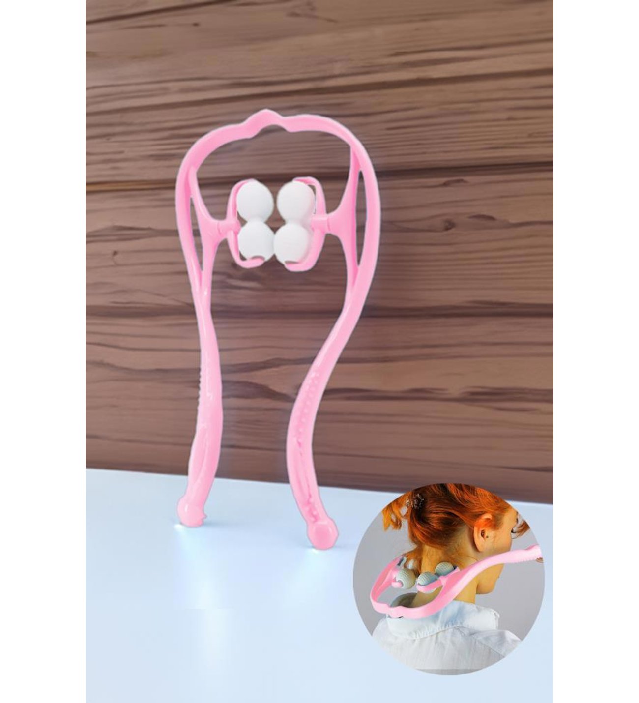 Masaj aletinin tekerlekleri, boyun kaslarına ulaşır.