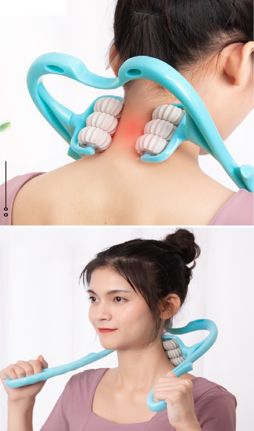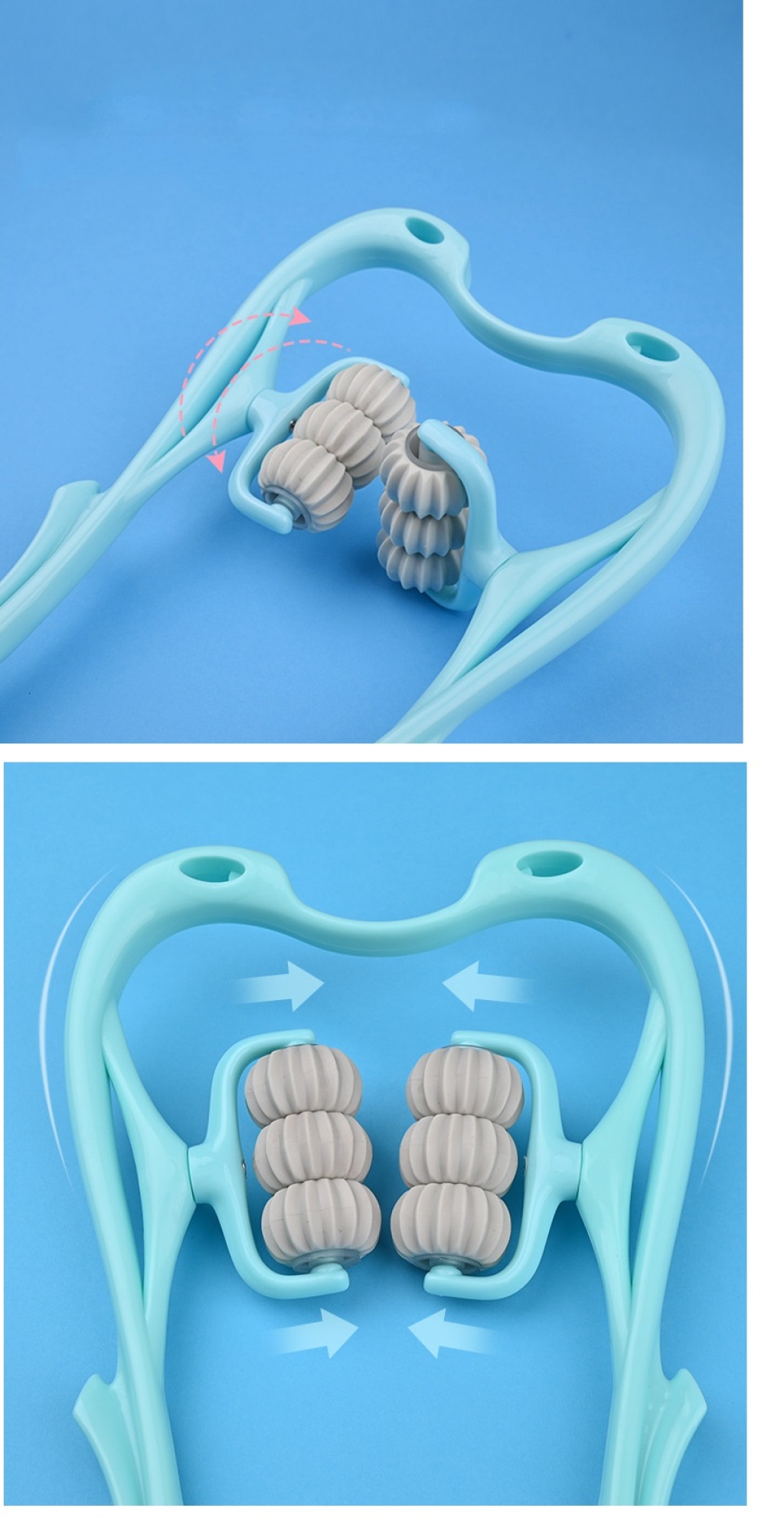 Kolay Taşınabilirlik: Çok Fonksiyonlu Manuel Altı Tekerlekli Boyun Masaj Aleti, taşınabilir ve hafif bir yapıya sahiptir. mavi ve pembe renklerdedir.