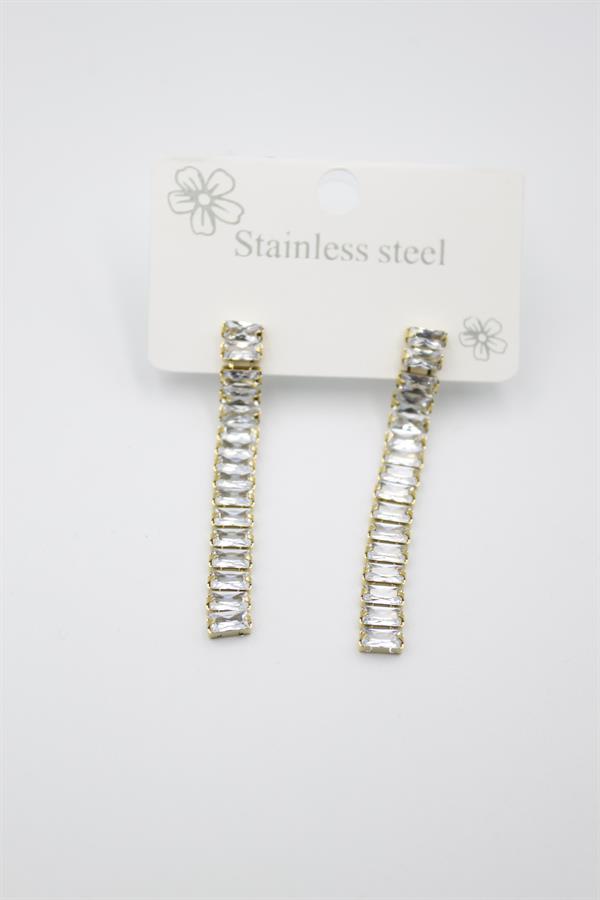 Büyük Baget Taşlı Çelik Küpe - Altın