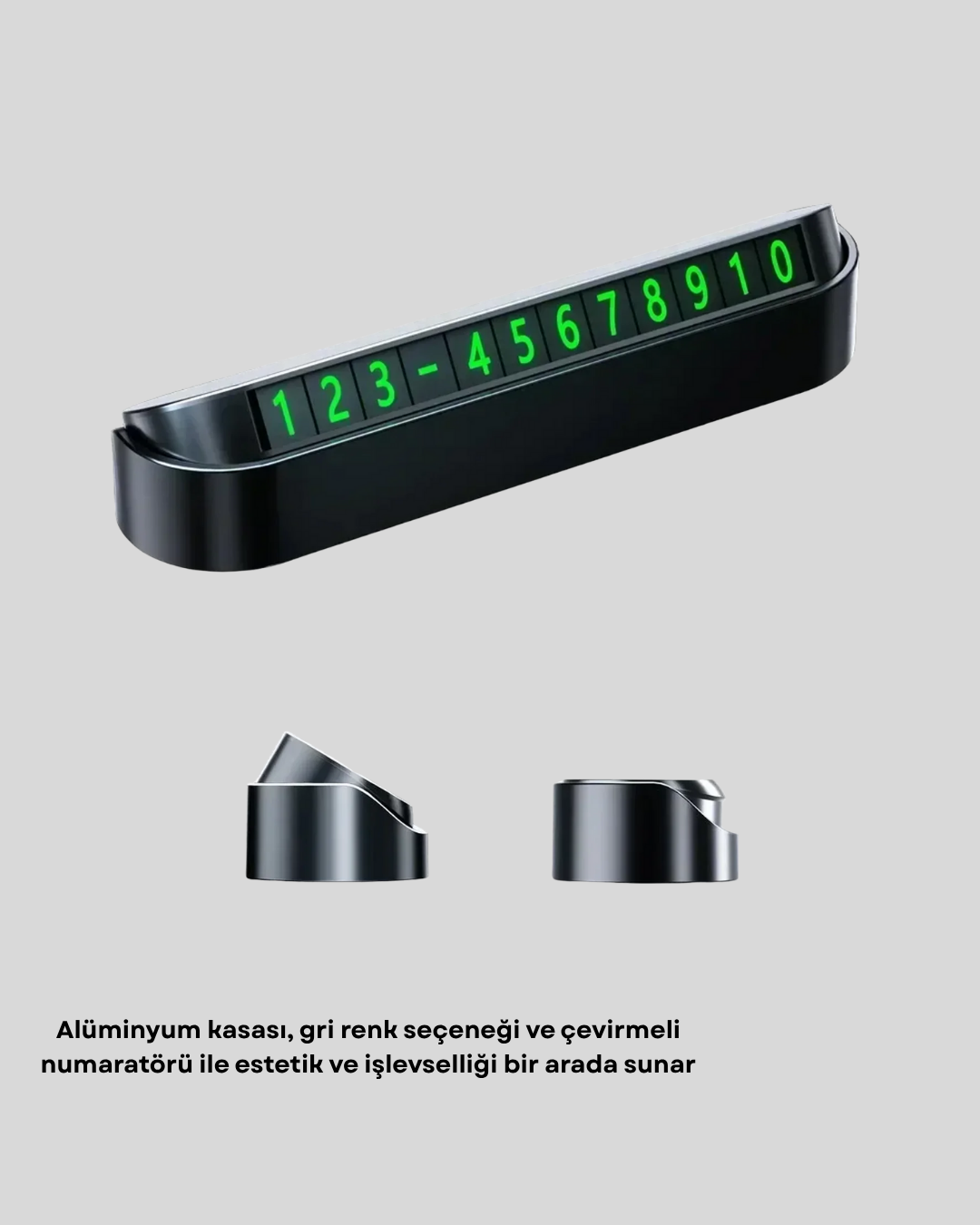 Çevirmeli Araç İçi Park Numaratörü – Alüminyum Gri, Kolay Montaj ve Net Görünüm