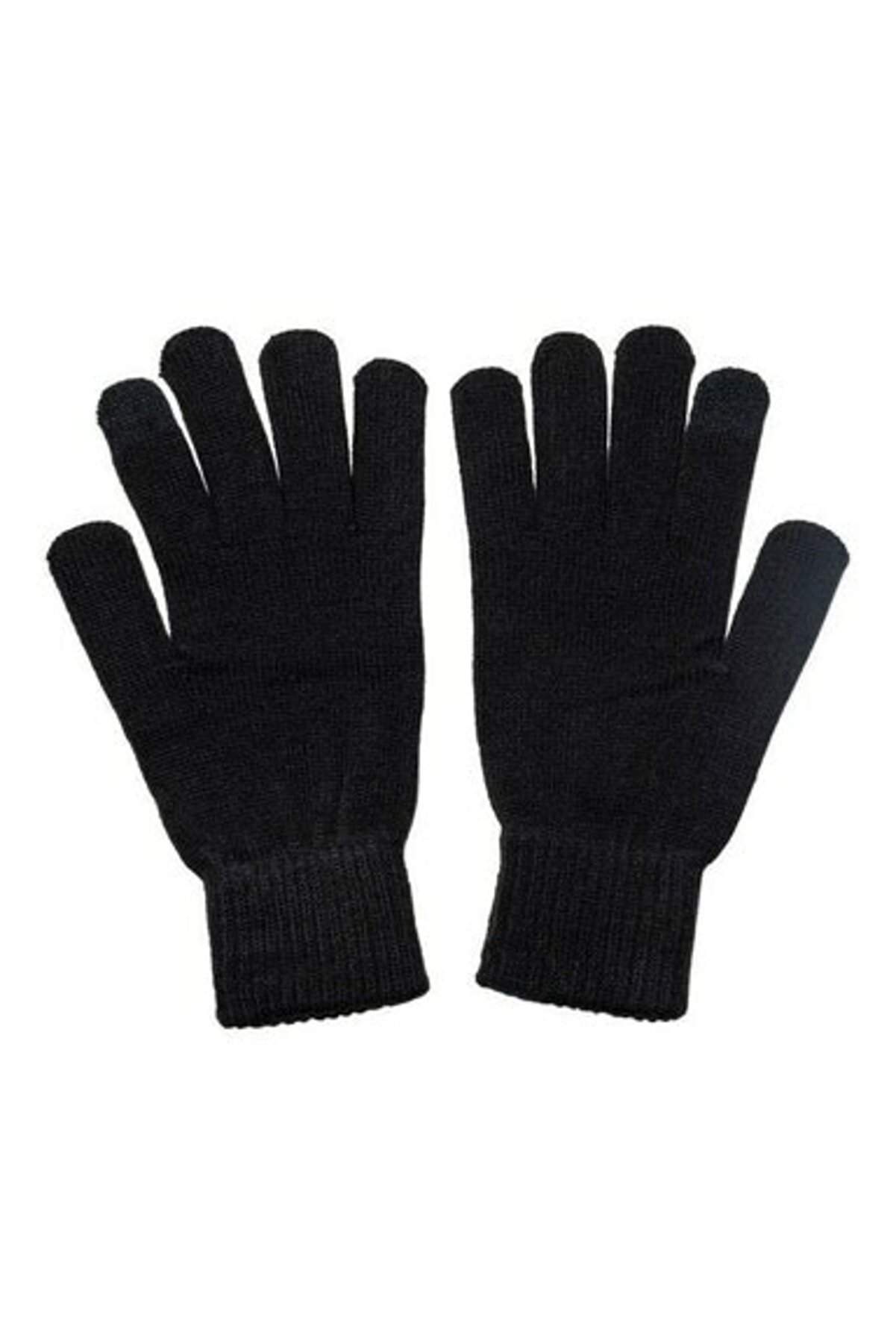 Çift Katlı Kalın Siyah Sıcak Tutan Yün Kışlık Kadın Erkek Eldiven Unisex 1 Çift