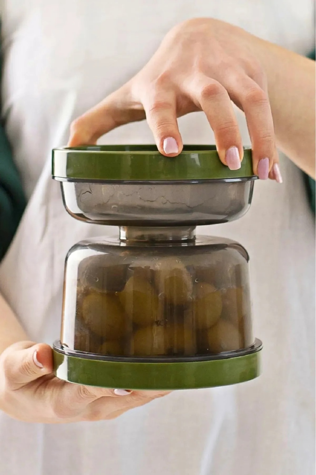 Çift Taraflı Süzgeçli Kapaklı Zeytinlik - Suyu Süzen Zeytin Turşu Saklama Kabı
