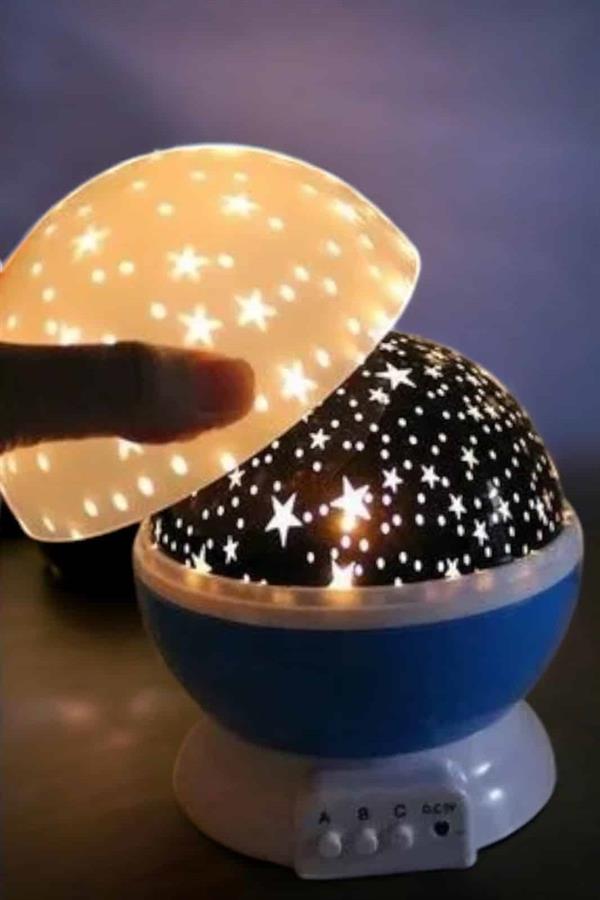 Yıldızlı Gökyüzü Projeksiyon Gece Lambası, her yaştan insan için muazzam bir görsel deneyim sunar. Mavi ve mor ışıklarla dönen yapısı, tavanınızda inanılmaz bir yıldızlar geçidi yaratır ve odanıza hareketli gezegenler, ay ve samanyolu gibi muazzam manzaralar yansıtarak adeta gökyüzünün büyüsünü evinize taşır. Özellikle çocuklar için mükemmel bir gece lambası karanlıktan korkan çocukların odasında rahatlıkla kullanılabilir ve onların uykuya geçişini daha huzurlu hale getirir. Şeffaf üst kapak sayesinde ışık doğrudan tavana yansıtılabilir veya farklı bir açıyla yönlendirilerek farklı bir atmosfer oluşturulabilir. Işık seviyesini ve rengini ayarlayarak odanızın ambiyansını istediğiniz şekilde şekillendirebilirsiniz. Ayrıca, gözleri rahatsız etmeyen tasarımı sayesinde uzun süreli kullanımlarda bile herhangi bir rahatsızlık yaratmaz. 4 adet AAA pil ile çalışan bu projeksiyon gece lambası, kolay taşınabilirlik sunar ve enerji verimliliği sağlar. Yıldızlar, gezegenler ve ayın büyüleyici ışıklarıyla odanızı aydınlatırken, hem görsel bir şov hem de rahatlatıcı bir atmosfer yaratır.
