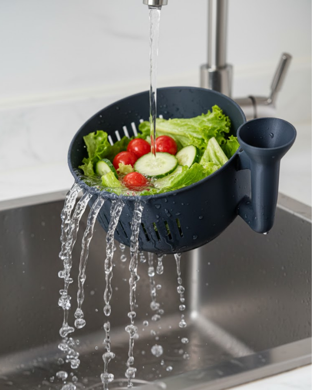 Çok amaçlı kullanım sunan bu sebze yıkayıcı, meyve ve sebzelerinizi hızlı ve etkili şekilde temizlemenizi sağlar. Süzgeçli iç yapısı suyun kolayca tahliye edilmesine yardımcı olur. Şık siyah tasarımı modern mutfaklara uyum sağlar.