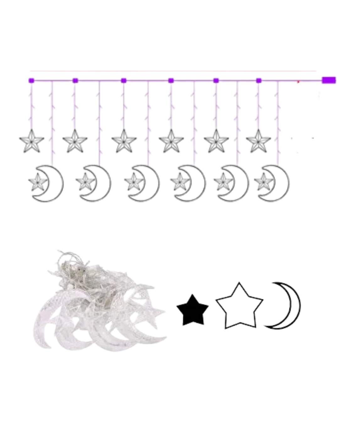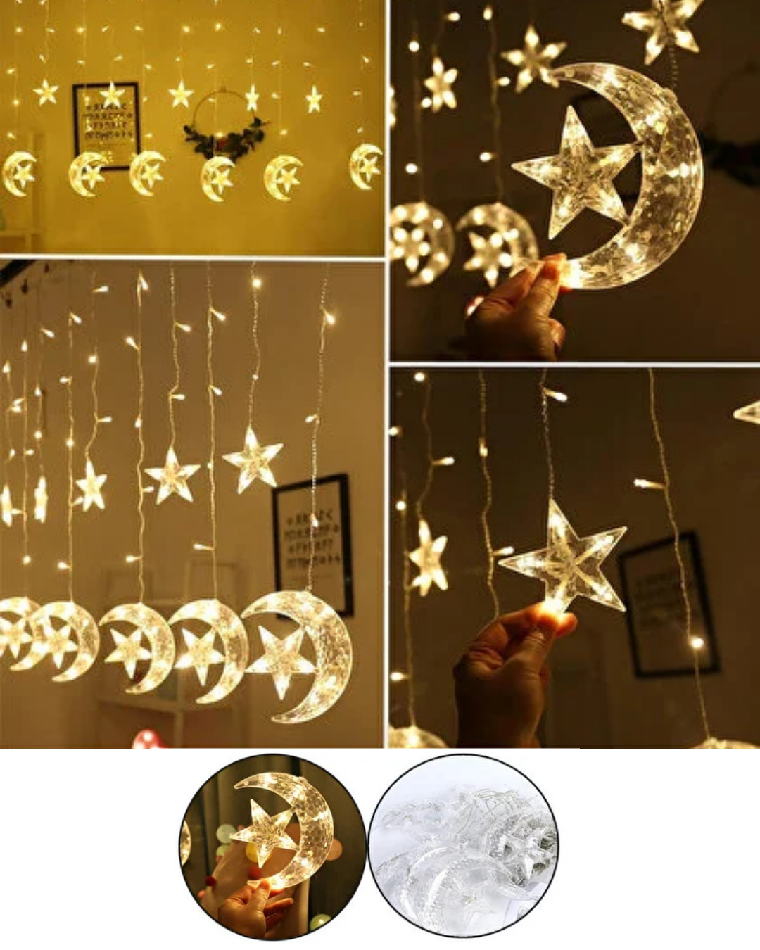 Dekoratif Ay Yıldız Perde Işığı Sıcak Beyaz Festival ve Ev Süsleme