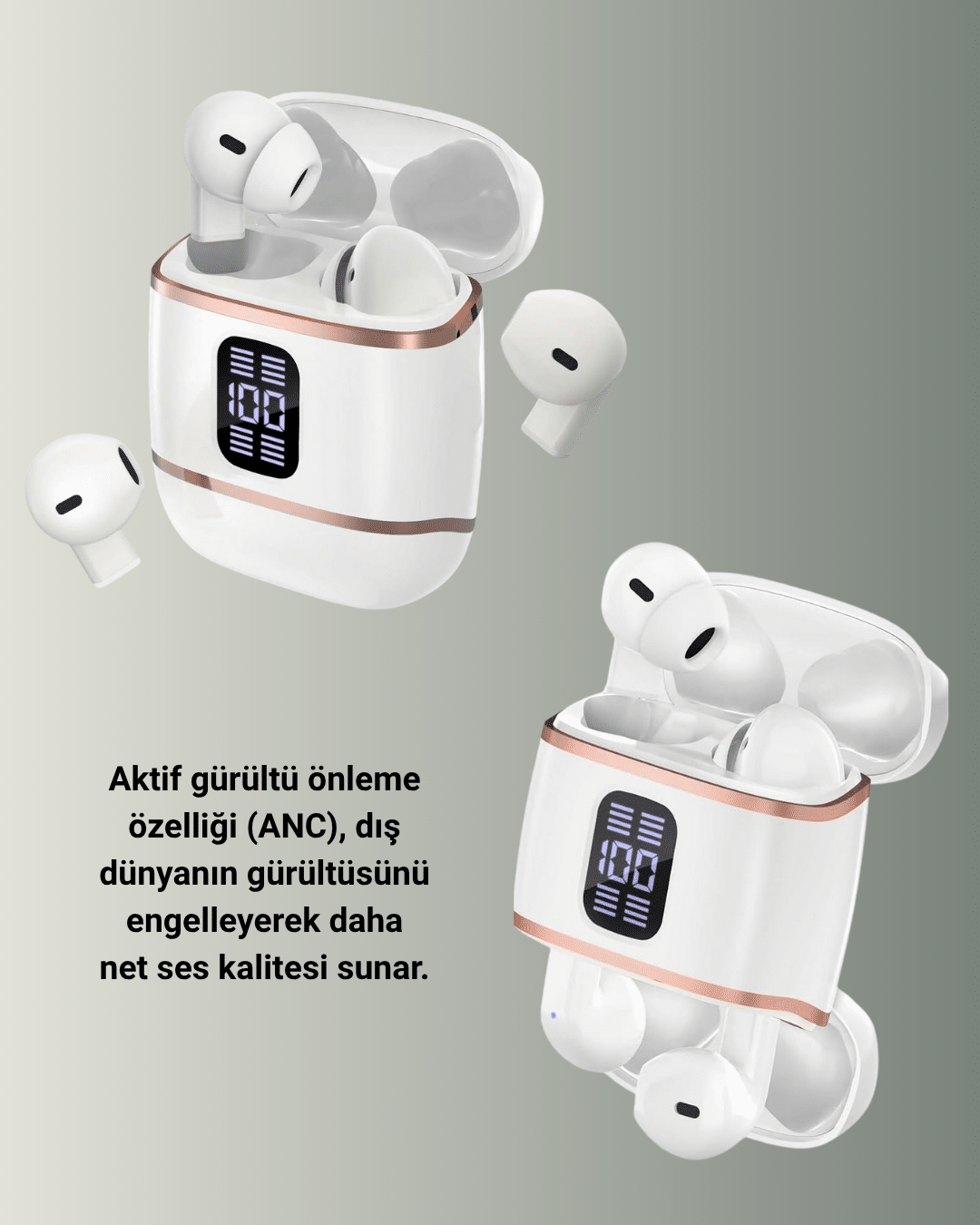 Dijital Göstergeli Bluetooth Kulakiçi Kulaklık – 4’lü Paket, Gürültü Engellemeli