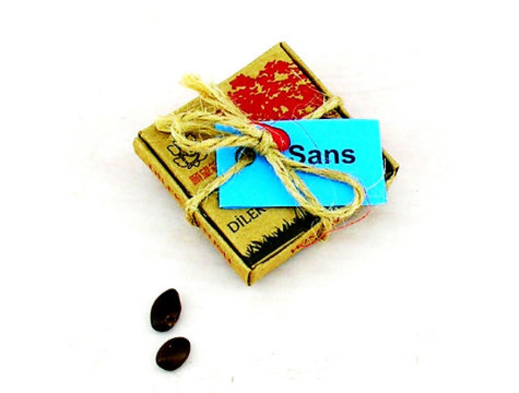 Ürün, özel kraft kutusu içerisinde olup, üzeri iple bağlıdır. Kutu ölçüsü: 4 x 4 cm.dir.