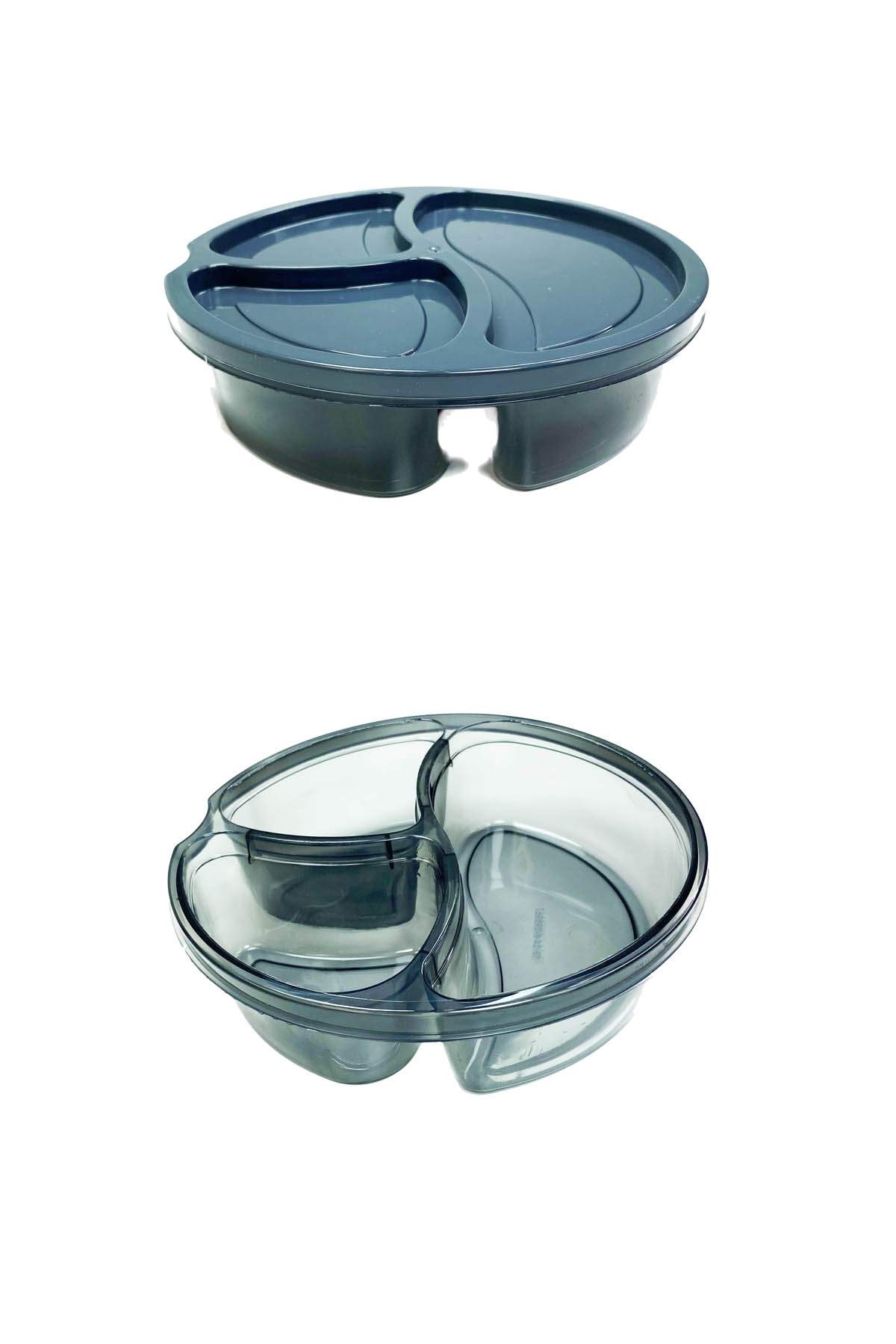 Diyet Saklama Kabı 3 Bölmeli Pratik Yuvarlak Beslenme Kahvaltı Kabı Koyu Gri