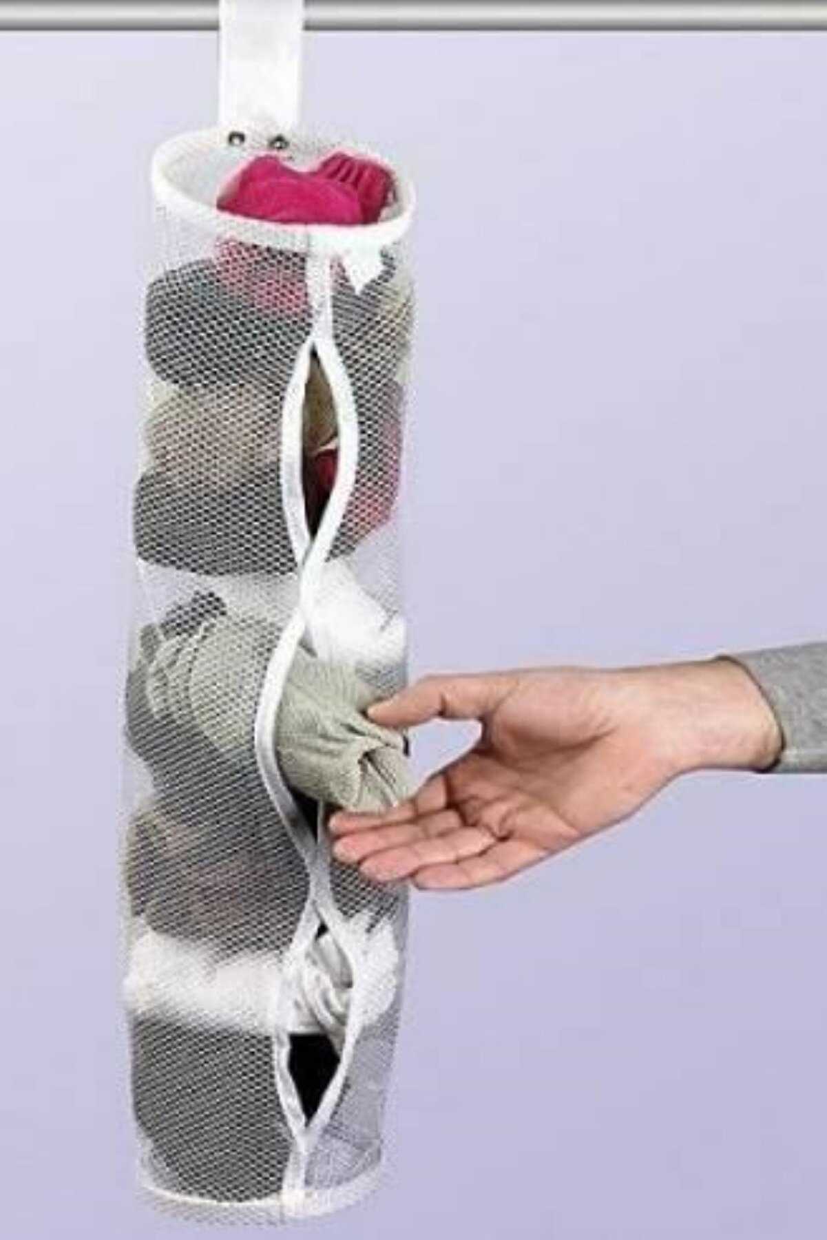 | Çorap Filesi ile çoraplarını dolabınızda artık renklerine göre ayarlayabilir ve dağılmasını önleyebilirsiniz. Kolay görüş sağlar, dilediğiniz çorabınızı ara boşluklarından dağıtmadan alabilirsiniz. Yıkandığında katladığınız çoraplarınızı atın içine sıralansınlar. Çekmecede çorap karmaşasına son. ÜRÜN BİLGİLERİ: Renk : Beyaz. Ebat: Boy 55 cm. Çapı : 12 cm. |