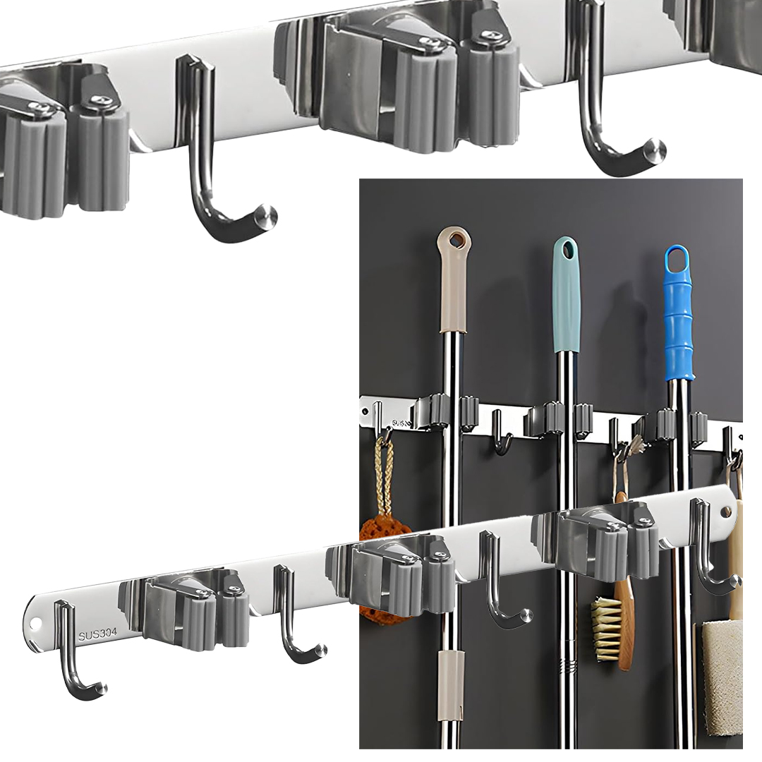 Dört Kancalı Askılık Üç Klıpslı Paspas Süpürge Tutucu