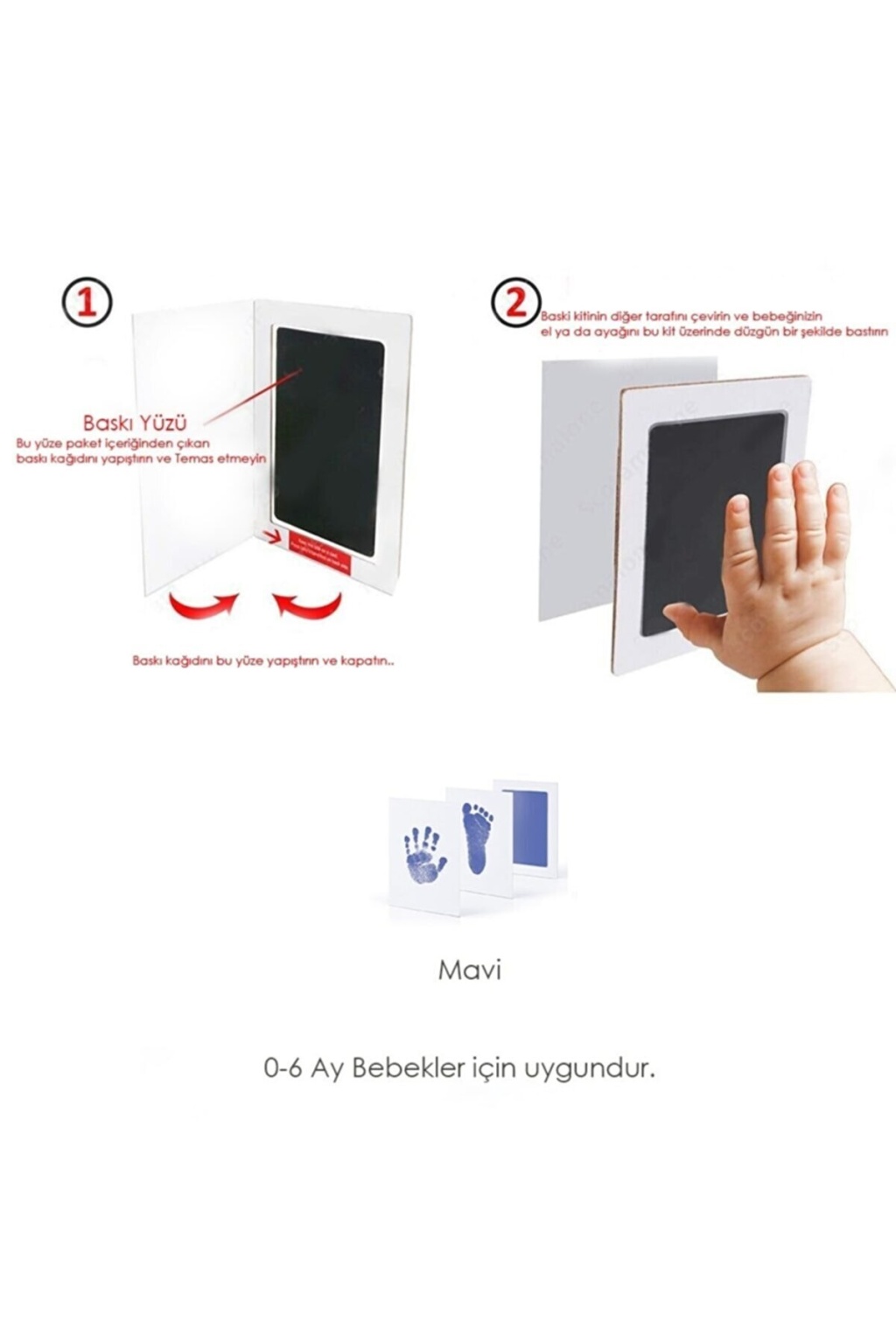 Bebek El ve Ayak İzi Fotoğraf içerisinde bebeğinizin el ve ayak izini alabileceğiniz Mürekkepsiz Baskı Kiti ile birlikte gelmektedir