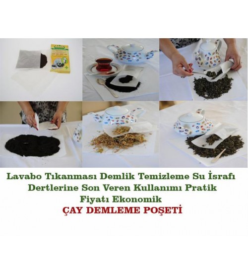 Çaydanlıklarınız kirlenmeden, lavabolarınız tıkanmadan, demliğin temizlenmesi için gereksiz yere su sarfiyatı oluşturmadan, su tasarrufu sağlar. Demleme poşeti, tüm çay ve bitkisel içecekler için kişiye özel karışımlar yapma ve damak tadına uygun alternatif çaylar hazırlanılabilmesi adına özel üretilmiştir.