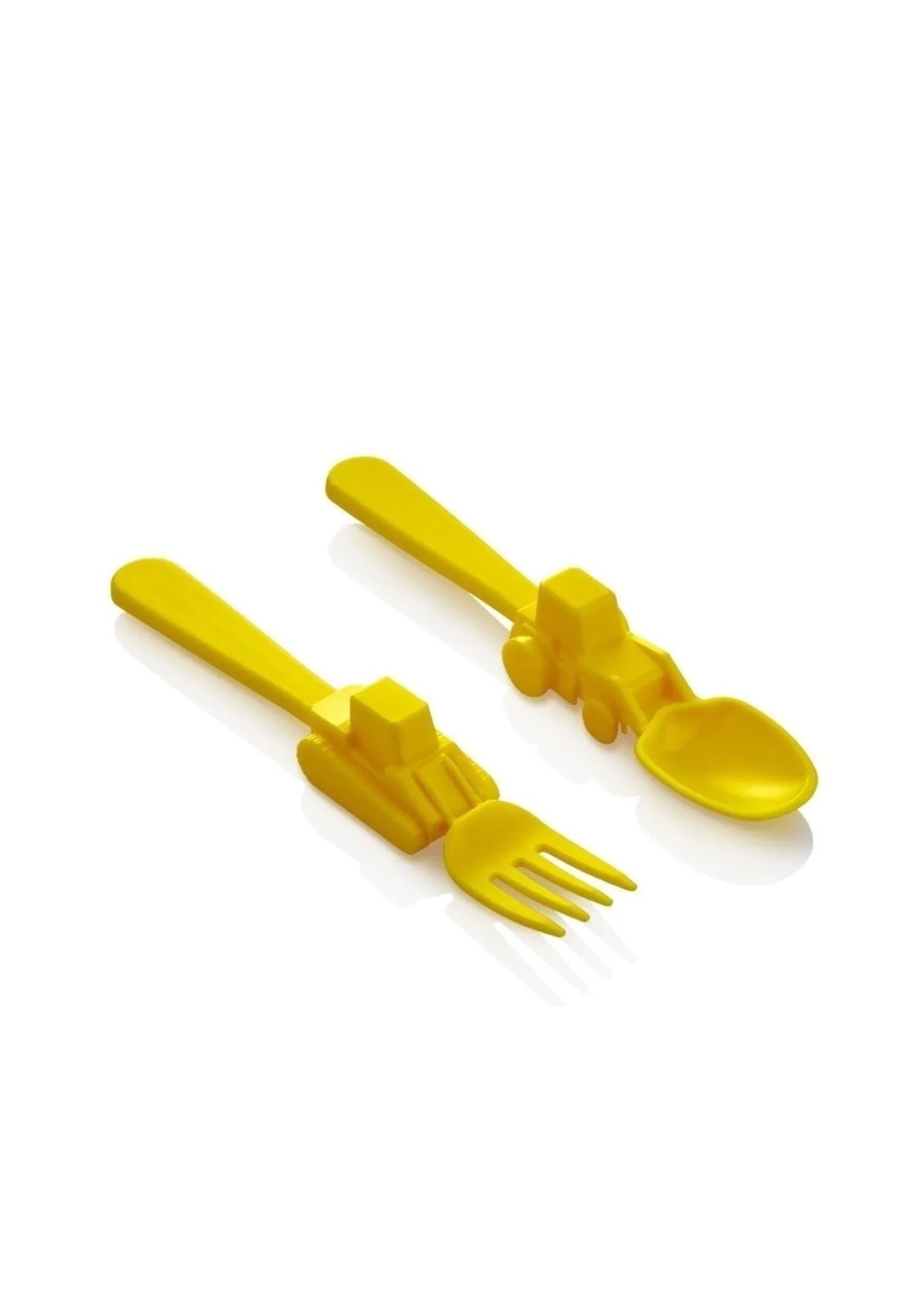 2'li Çocuk Bebek Mama Yemek Çatal Kaşık Seti İş makineleri şeklinde kaşık ve çatal seti ile bebeğiniz ve çocuğunuz için güvenle kullanabilirsiniz
