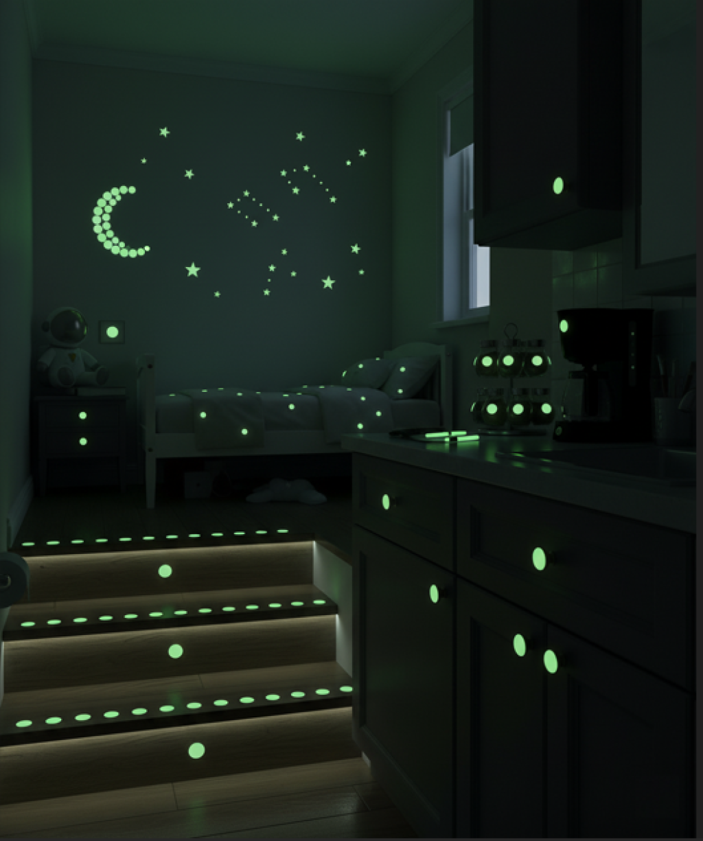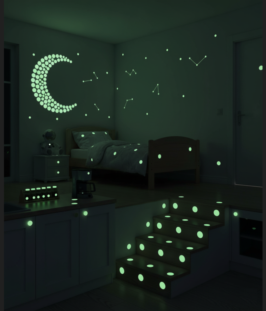 Çok Amaçlı Kullanım: Çocuk odalarında büyülü bir yıldız tozu dekorasyonu oluştururken, aynı zamanda merdiven ve koridorlarda güvenli bir gece aydınlatması sağlar.
