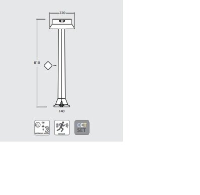 Yenilenebilir güneş enerjisi kullanan, 810 mm yüksekliğinde, modern tarzda direk bağlantısı. Darbeye dayanıklı reçine malzemeden yapılmış, UV ışınları stabilize edilmiş, pas ve korozyona dayanıklı....