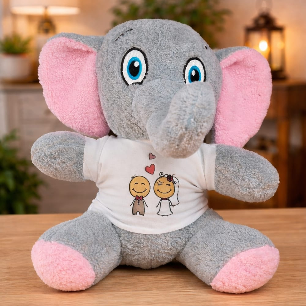 Gelin Damat Tasarım Tişörtlü Peluş Sevimli Fil