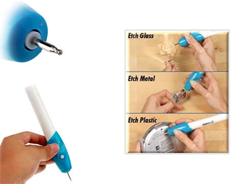 Aynı bir kalem gibi kullanılan pille çalışan bu ürünle eşyaların üzerine kazıyarak yazı yazabilir ve şekil çıkarabilirsiniz!