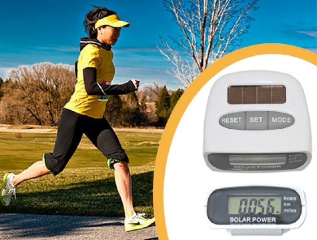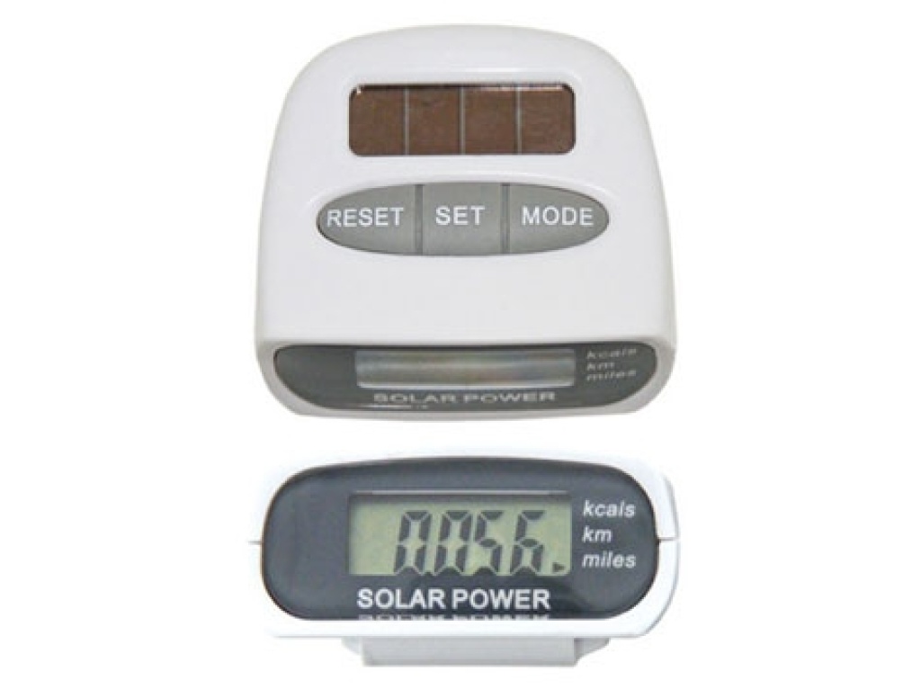 Güneş Enerjili Adımsayar ve Kalori Ölçer enerjisini güneşten aldığı için pil ihtiyacı olmamaktadır. Geniş LCD dijital ekran sayesinde belinizdeki koşma ve yürüme hareketlerini sayarak ne kadar kalori yaktığınızı gösterir. Ayrıca saydığı adımı hem mil hem de km olarak da gösterir.