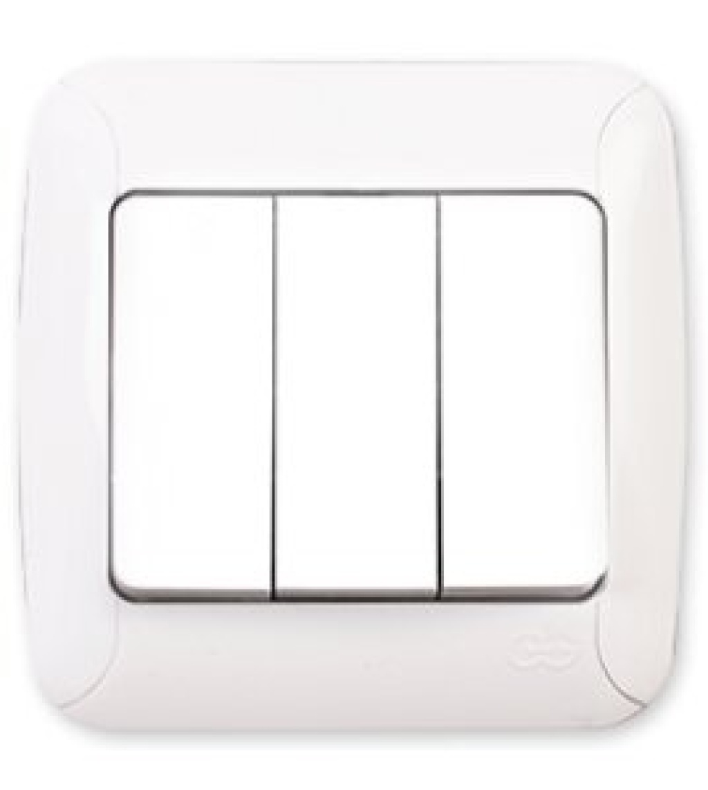 Üçlü anahtar, üç lamba veya lamba grubunu bir noktadan açıp kapatmaya yarayan anahtara denir. Bir kasa içerisinde üç anahtar fonksiyonunun yer almış halidir. Üçlü anahtarın bir adet giriş ve üç adet çıkış olmak üzere dört adet bağlantı klemensi bulunur. Bu bağlantı klemenslerinden birine sigortadan gelen faz iletkeni, diğer klemenslere ise lambalara gidecek olan iletkenler bağlanır. Teknik Özellikler- 10AX,250V ̴- Bir kutuplu, üç yollu- Vidalı bağlantı modeli