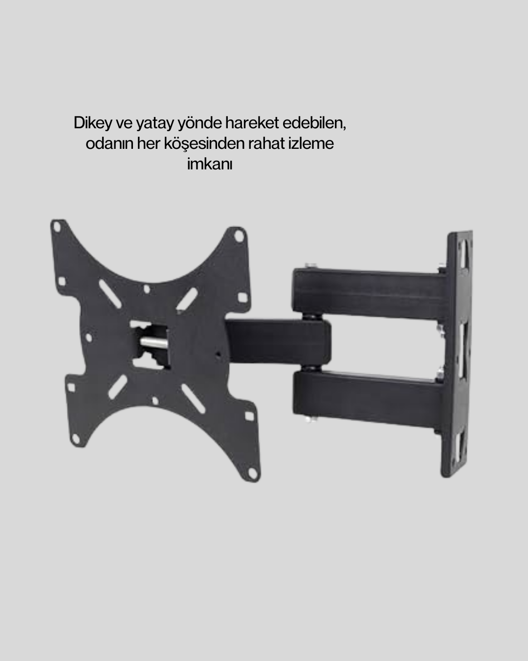 Hareketli TV duvar askı aparatı, 22–49 inç (56–124 cm) arası LED ve LCD televizyonlar ile tam uyumlu olacak şekilde tasarlanmıştır. Dikey ve yatay hareket kabiliyeti sayesinde izleme açınızı kolayca ayarlayabilir, daha konforlu bir seyir deneyimi elde edebilirsiniz. Modern ve sade tasarımı, ev ve ofis ortamlarında estetik bir görünüm sunar.Dayanıklı metal gövdesi sayesinde televizyonunuzu güvenle taşır. Kolay montaj özelliği ile kullanıcı dostudur. Her marka LED ve LCD TV ile uyumludur.