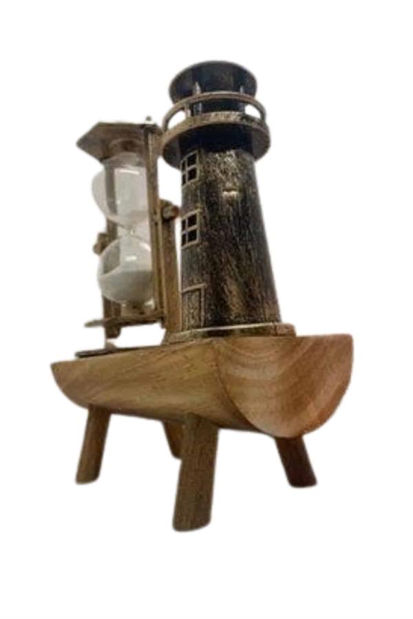 Deniz fenerlerinin huzur veren sessizliğini ve değirmenlerin dingin dönüşünü hatırlatan bu özel dekoratif ürün, yanında yer alan kum saatiyle zamanı adeta yavaşlatır ve size anın keyfini doyasıya yaşama imkânı sunar. Hayatın karmaşasından uzaklaşmak, sevdiklerinizle geçirdiğiniz kıymetli anları daha derin hissetmek ve küçük mutlulukları büyütmek isteyenler için anlamlı bir seçimdir. Ahşap malzemesiyle doğallığı yaşam alanlarınıza taşıyan bu tasarım, bulunduğu ortama sıcak ve samimi bir dokunuş kazandırır. Retro çizgileriyle nostaljik bir atmosfer yaratarak, geçmişin güzel anılarını bugünün estetiğiyle buluşturur. Tek parça olarak sunulan yapısıyla kolayca yerleştirilip kullanıma hazır hale gelir; ekstra montajla uğraşmanıza gerek kalmadan, huzur ve zarafeti bir araya getirir. İster kendiniz için keyifli bir köşe oluşturun, ister sevdiklerinize anlamlı bir hediye olarak sunun; bu ürün her haliyle hayatınıza değer katar.