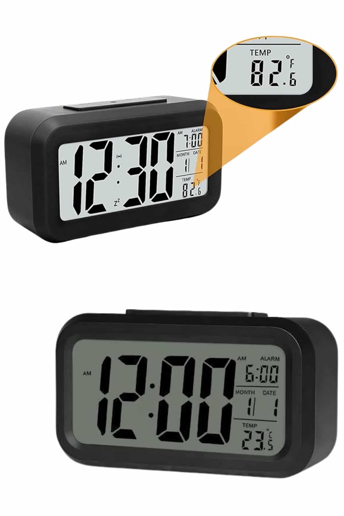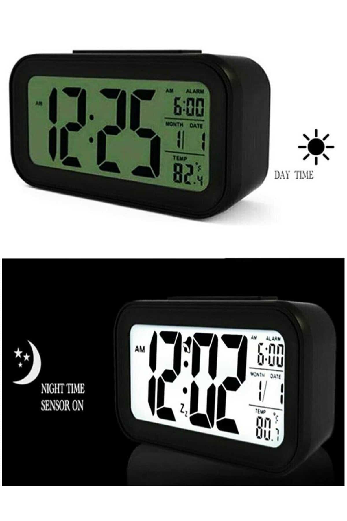 Işıklı Dereceli Masa Ofis Saati Alarmlı Termometre Takvim Çalar Saat