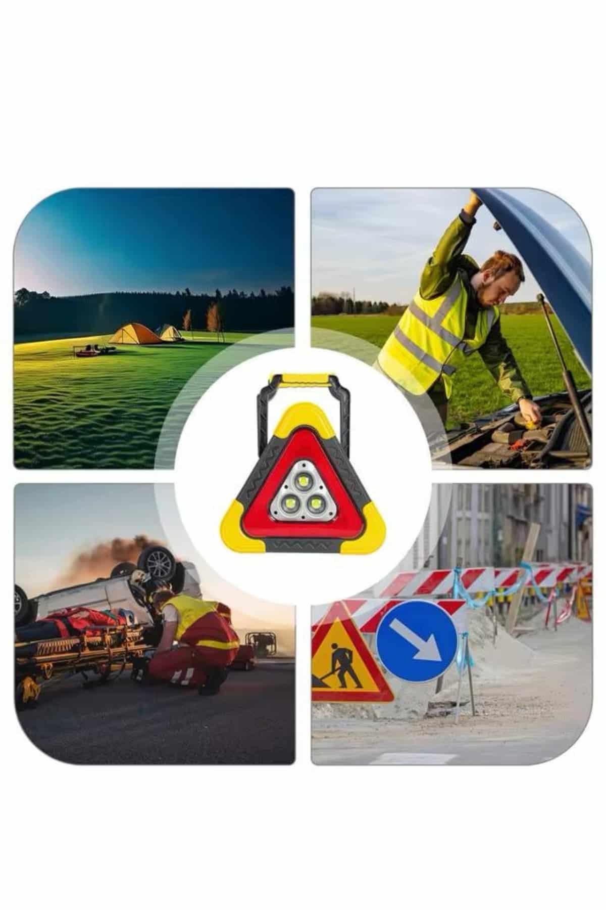 Işıklı Üçgen Reflektör Led Projektör Acil Durum Feneri Flaşör 500 Lümen