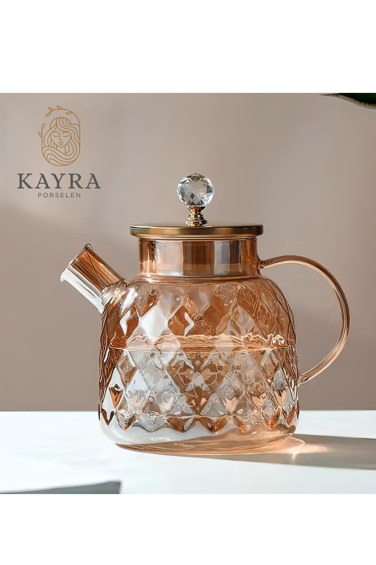 Kabartmalı Borosilikat Cam Demlik 1000ml Royaleks-CM-2006
