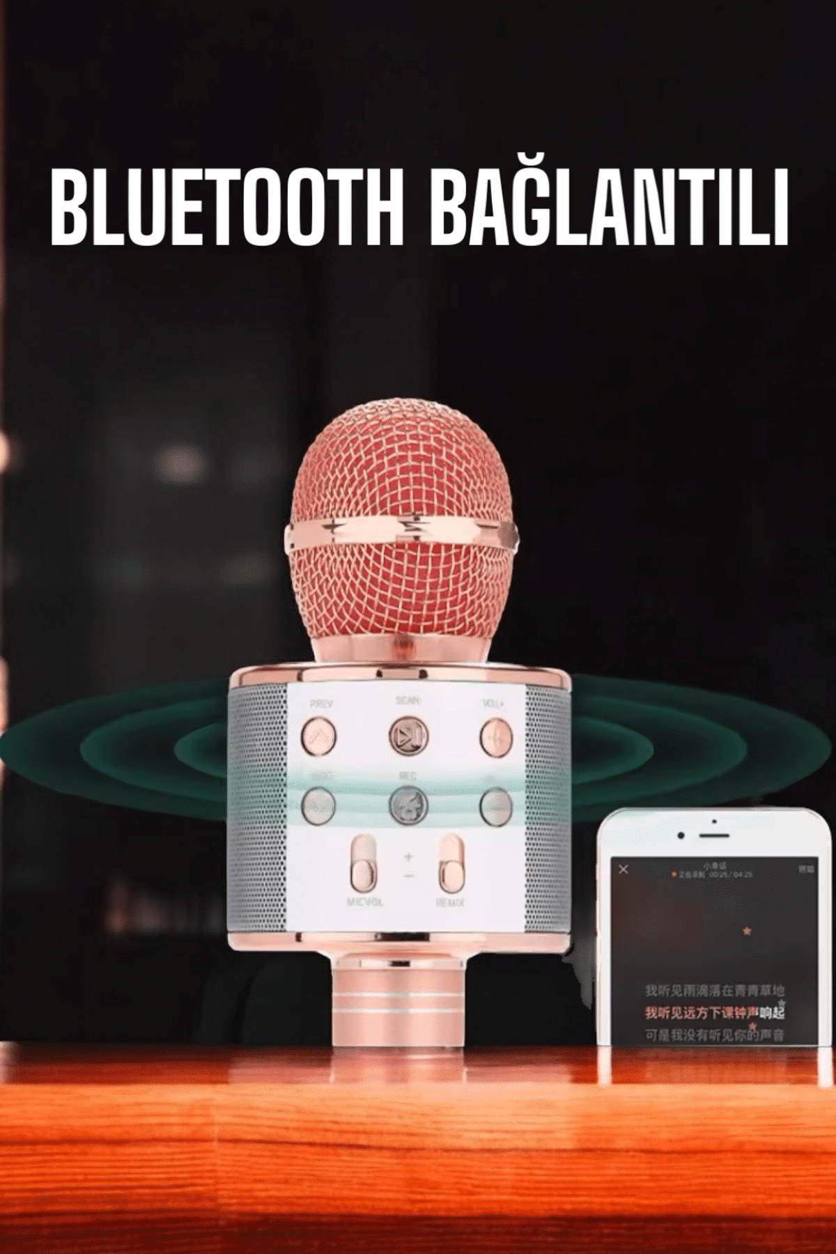 Kablosuz Bluetooth Karaoke Mikrofon USB ve AUX Girişli, Yüksek Ses Kalitesi