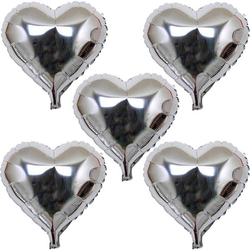 Kalp Şekilli Gümüş Renk Folyo Balon 45 cm 5 Adet