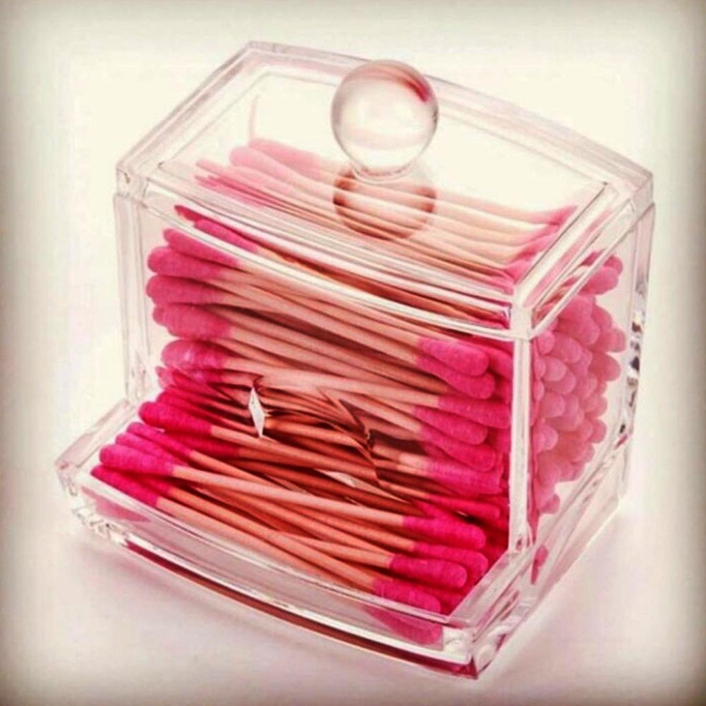 Şeffaf üstten kapaklı şık tasarım,Altta kulak temizleme çubuklarının alınma bölmesi vardır.