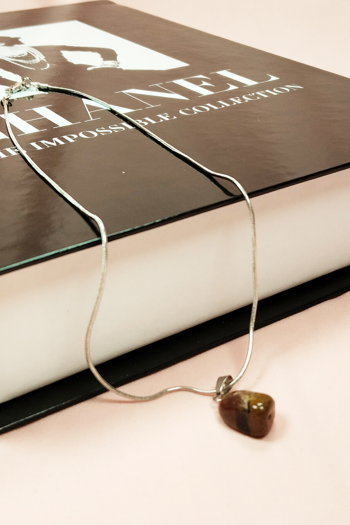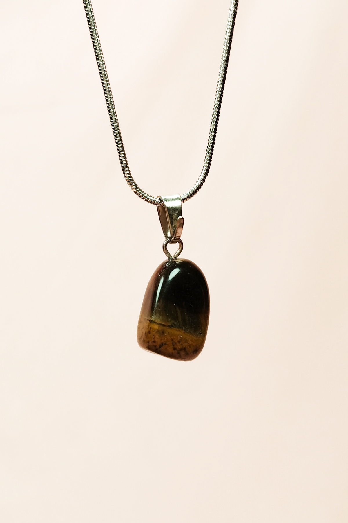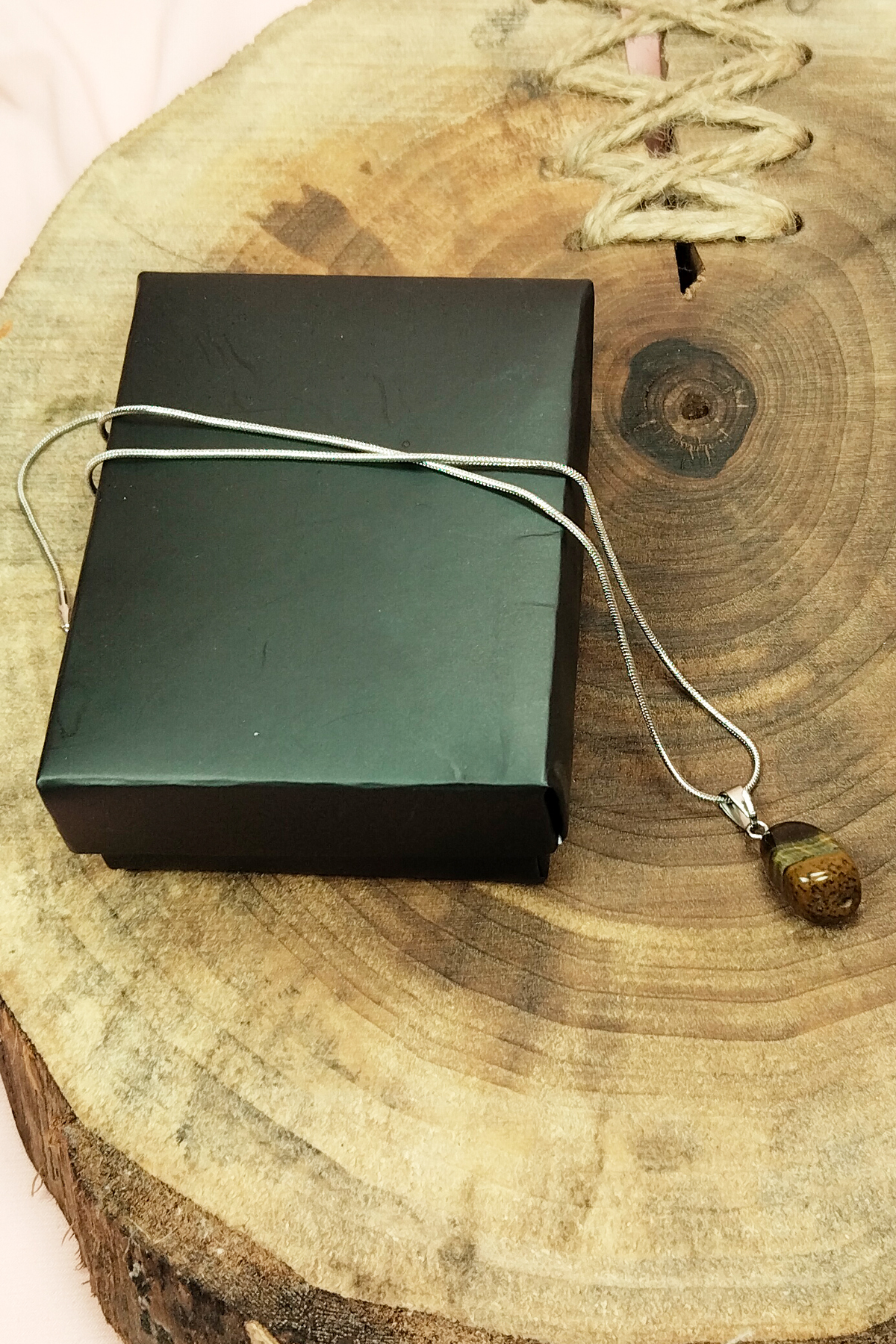 Kaplan Gözü Doğal Taşı Zincirli El Yapımı Kolye Uç: 2 cm Zincir: 20 cm Kutulu