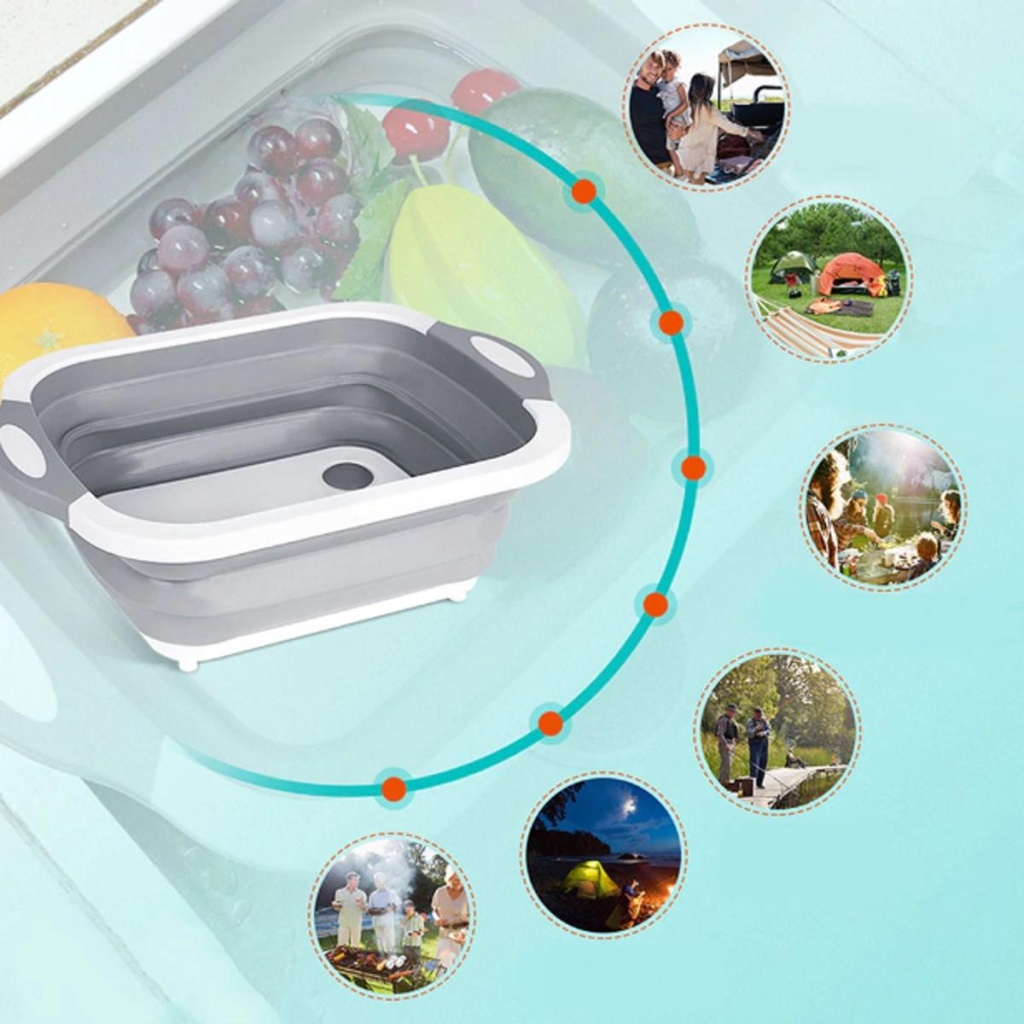 Katlanır Doğrama Tahtası - Giderli Sebze Yıkama Kabı Leğen